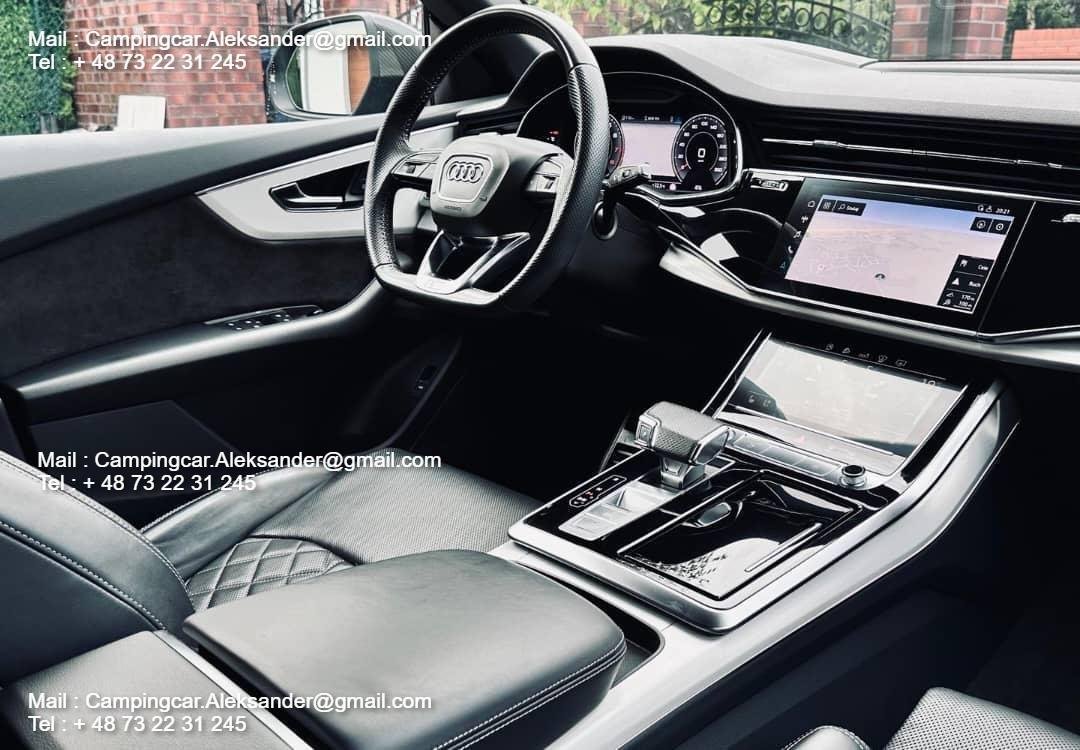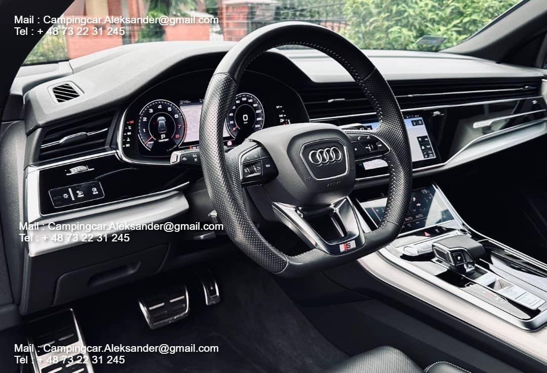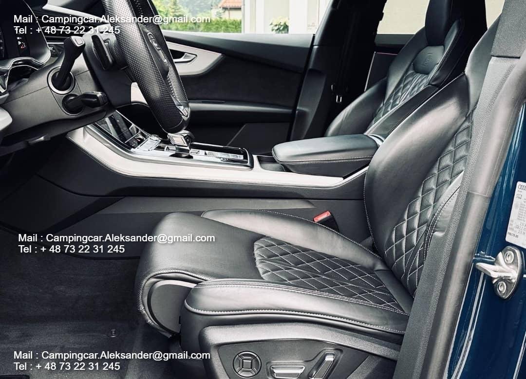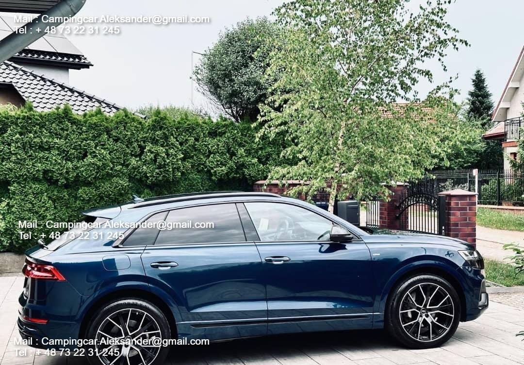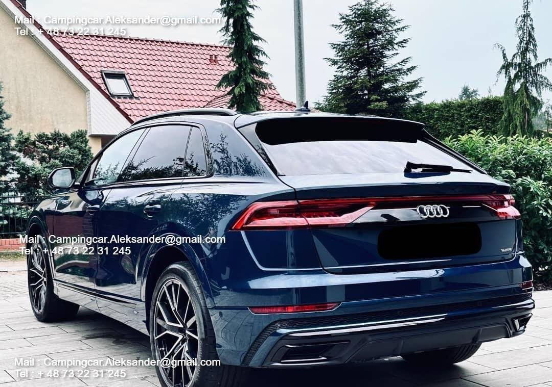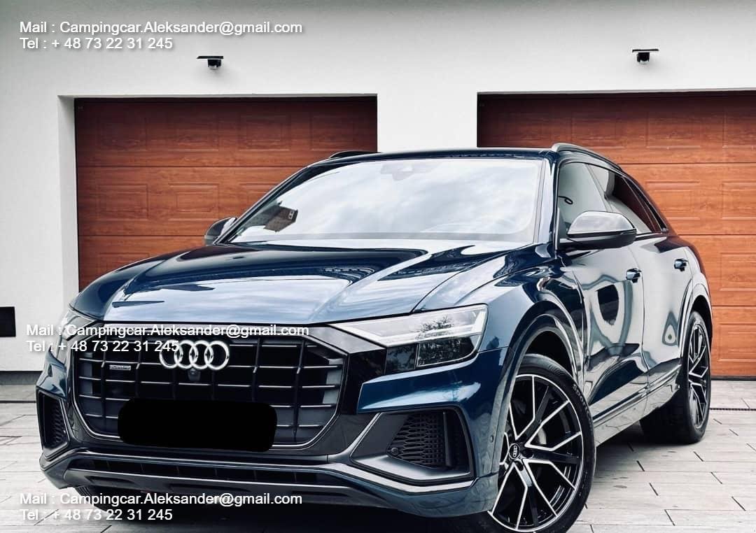 Audi Q8 55 TFSI 3.0 V6 340 CH Mild Hybrid en pack S-Line complet (intérieur et extérieur).