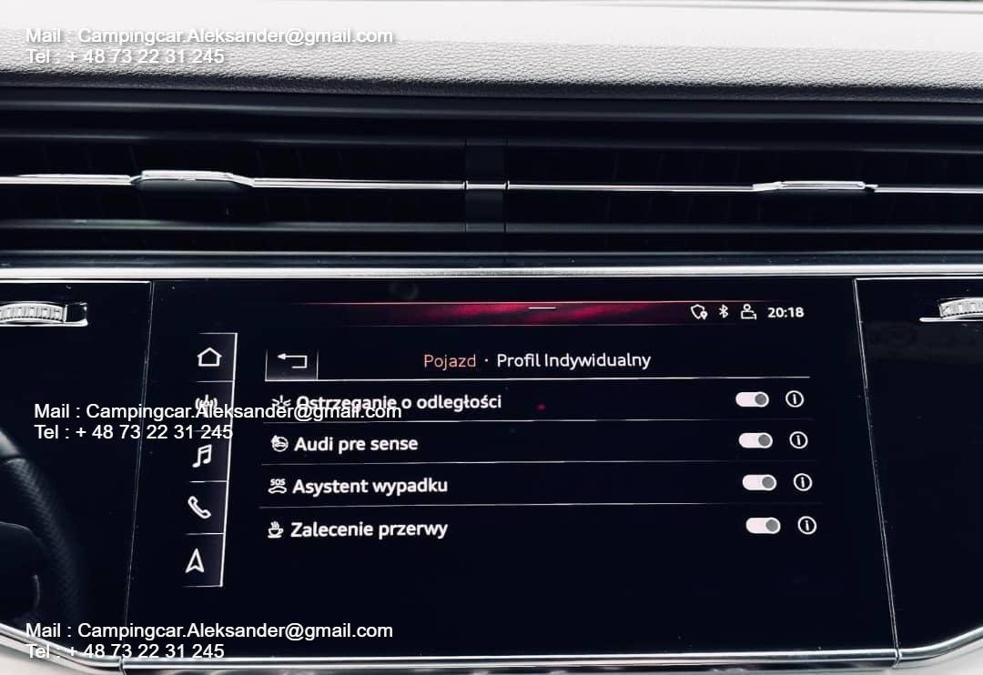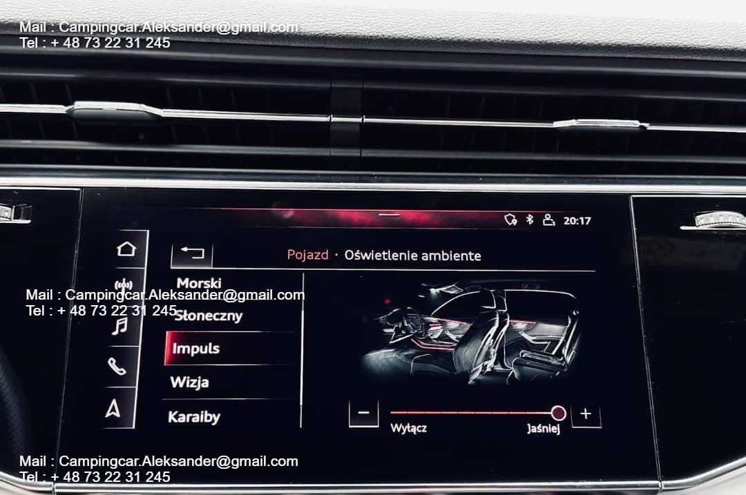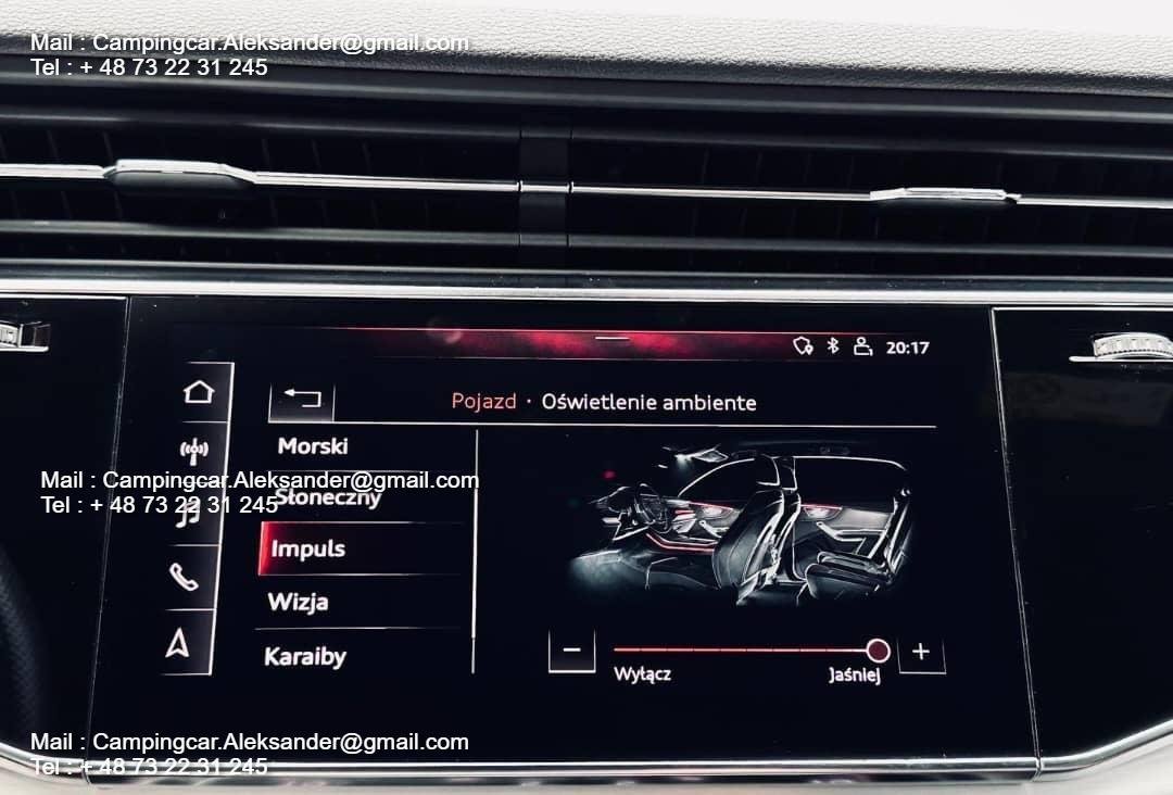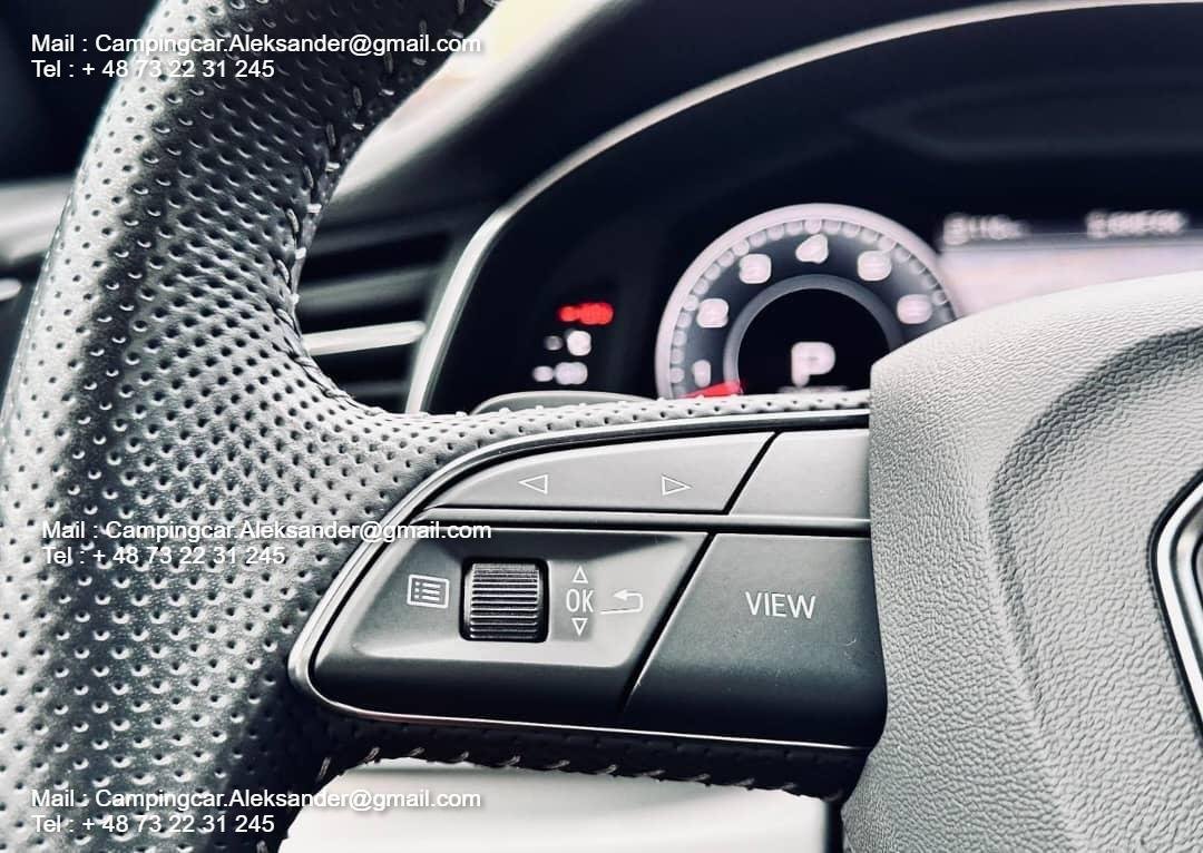 , La voiture se présente superbement. Les jantes Audi Sport de 22 pouces + le pack noir + la couleur spéciale Galaxisblau Metallic avec une brillance éclatante. font que la voiture se démarque fortement. En outre, les boîtiers des rétroviseurs extérieurs sont en carbone.