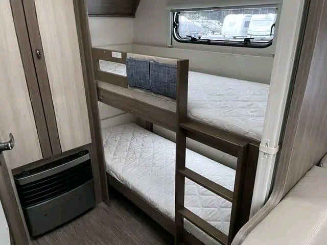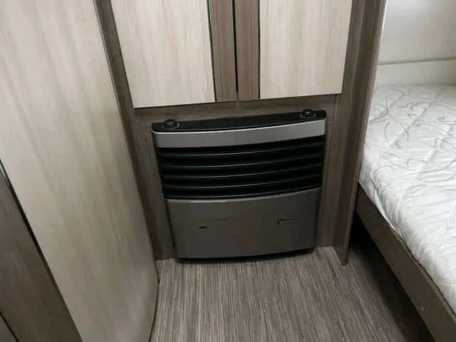 La caravane est équipée d’un chauffage à air Truma et d’un chauffage électrique par le sol.