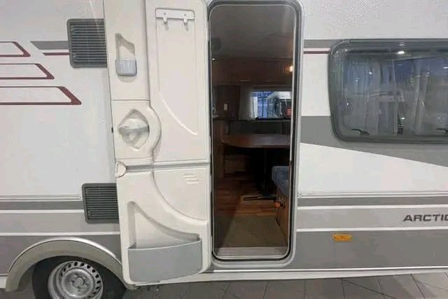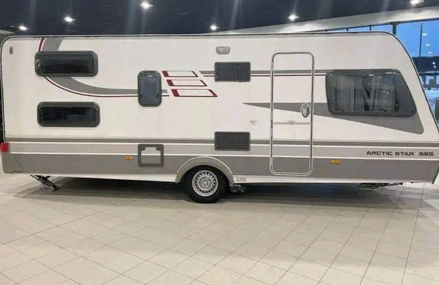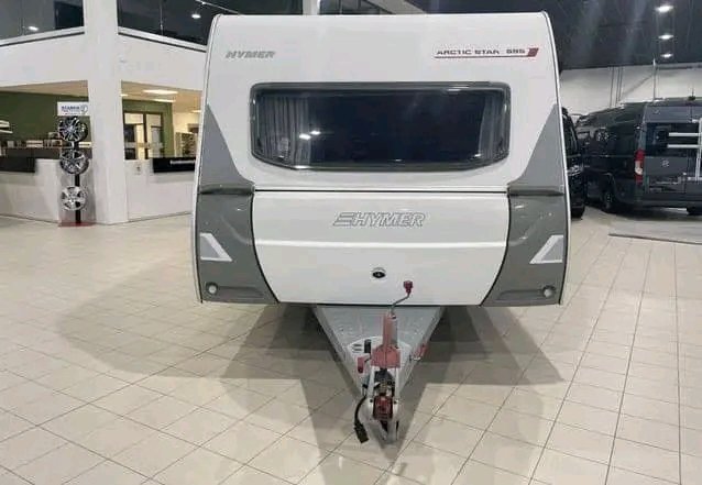 Superbe Hymer Arctic Star maintenant en stock ! Caravane familiale parfaite avec lit double et lits superposés.