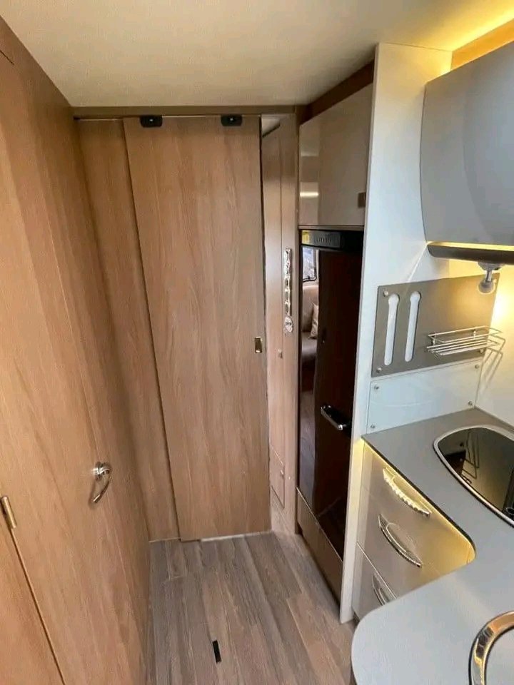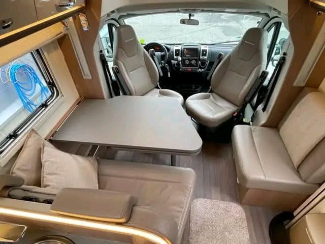 Voici un modèle spécial et populaire de Bürstner ! Il s’agit d’une voiture avec 2 lits abaissables électriques, un groupe de sièges central et un salon avec canapé en forme de L à l’arrière ! La voiture dispose également d’un plancher lisse à l’intérieur, de toilettes et d’une douche séparées, de 2 téléviseurs, d’une alarme au gaz Nx5 et d’un bel éclairage intérieur ! En outre, la voiture dispose de 150 CV reliés à un système automatique de contrôle de la température.