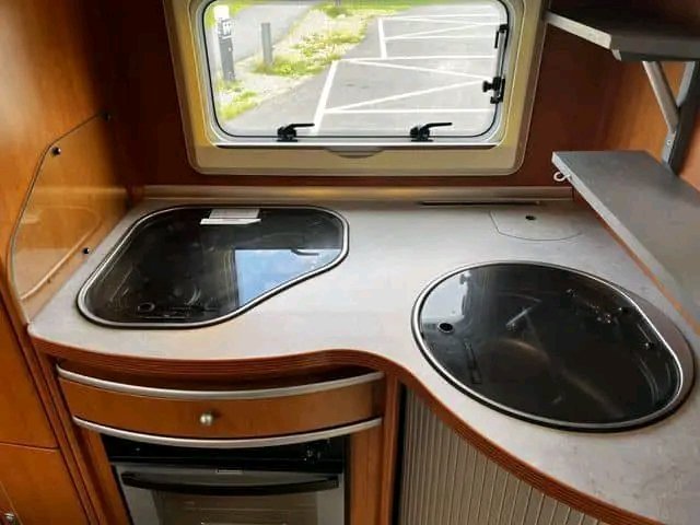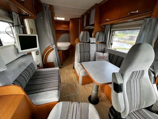 À l’arrière, vous trouverez un lit double côte à côte pouvant accueillir deux personnes, et à l’avant, un grand lit escamotable pouvant accueillir deux personnes supplémentaires.