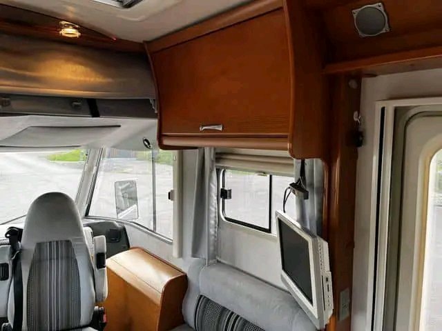 À l’avant, vous disposez de deux sièges pilotes confortables, ainsi que d’une caméra de recul, d’un régulateur de vitesse et d’un grand pare-brise qui vous offre une vue dégagée lors de vos déplacements.