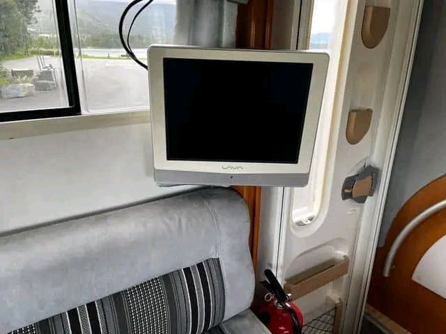 L’espace est spacieux et confortable, avec de la place pour plusieurs personnes. La table peut être déplacée en la faisant coulisser d’avant en arrière. Un téléviseur est également installé dans le coin salon.