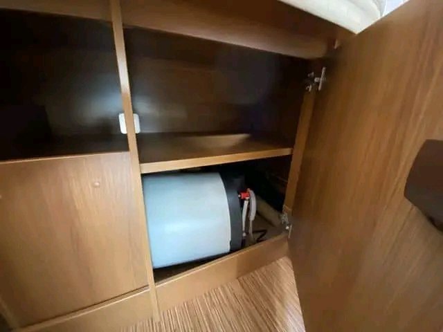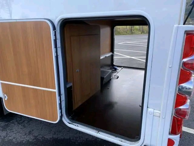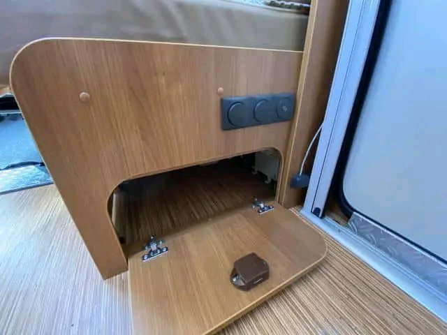 Grand garage spacieux pour de nombreux objets. L’accès est facile grâce aux trappes situées des deux côtés. L’accès est également facile pour placer les bouteilles de gaz. Il y a de la place pour 2 bouteilles de gaz de 11 kg.