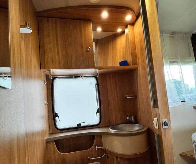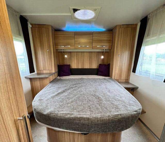 La véhicule possède l’un des aménagements les plus recherchés, avec un grand lit double central réglable en hauteur en continu de 140 x 200 cm à l’arrière et un lit surbaissé pour deux personnes au-dessus de la zone de sièges.