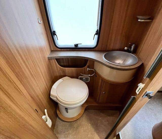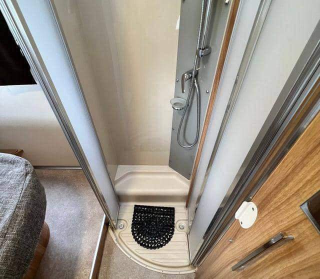 La voiture dispose d’une salle de bain et d’une douche séparées, et la porte de la salle de bain permet de s’enfermer dans les toilettes ou de fermer la porte entre la zone de couchage et la zone de sièges. En d’autres termes, la voiture dispose en fait de trois pièces que vous pouvez utiliser. Pratique !