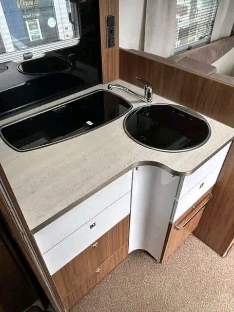 Équipé, entre autres, de Moteur Fiat 130 CV avec transmission automatique, climatisation, régulateur de vitesse, batterie au lithium et panneau solaire avec Bluetooth, barres de toit avec croisillons, échelle arrière, porte-vélos, auvent, antenne TV+TV, alarme à gaz, tapis cousus sur les bords, porte moustiquaire, verrouillage centralisé, grand réfrigérateur avec congélateur séparé, chauffage gaz/électrique Truma EH-6000, radio DAB, caméra de recul, jantes en alliage, rideaux plissés dans la cabine, fenêtre de toit à l’avant, etc.