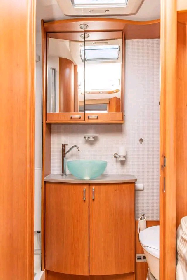 Nous avons reçu un fun avec un beau lit et un bassin de salle de bain, AC dans la section du conducteur, Airbag, Jantes en aluminium, CD stéréo, Régulateur de vitesse, Pneus approuvés, Double plancher, Rétroviseur électrique, Fenêtre électrique, Alarme gaz, Chauffage par le sol à eau, Manuel d’instructions, Réfrigérateur avec propre congélateur, Auvent, Porte moustiquaire, Reg. Documentation, Caméra de recul, Verrouillage central, Panneau solaire, Four, Pieds de support arrière, Porte-vélos, TV, Antenne TV pour riks, Douche extérieure, Chauffage électrique, Chauffage, à eau