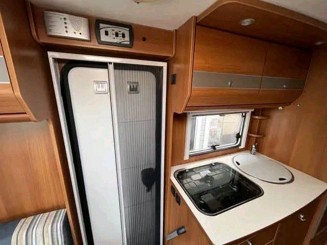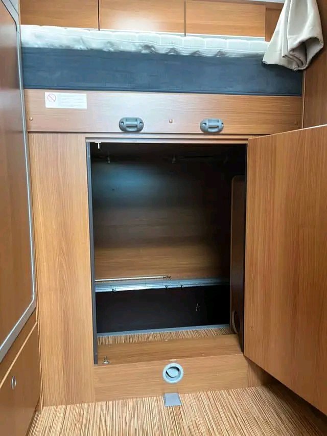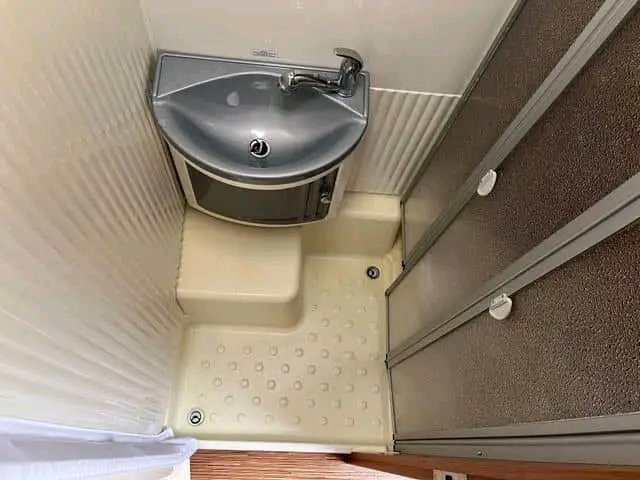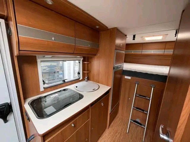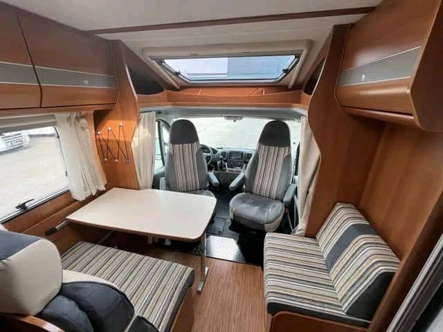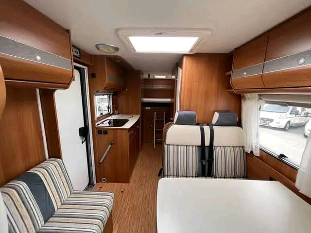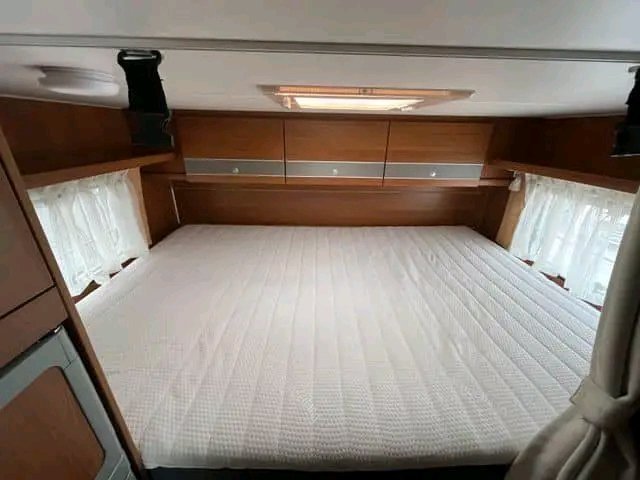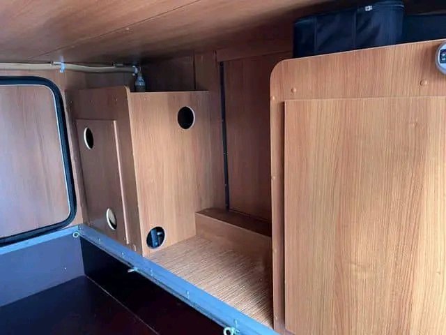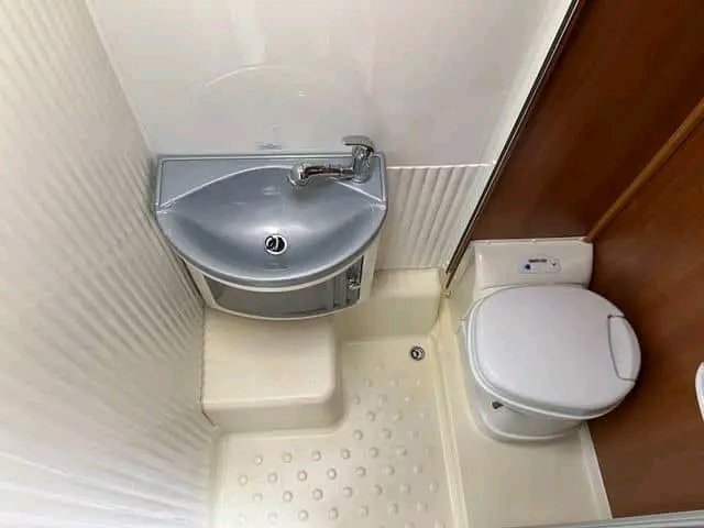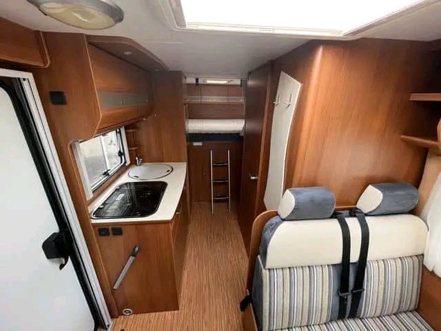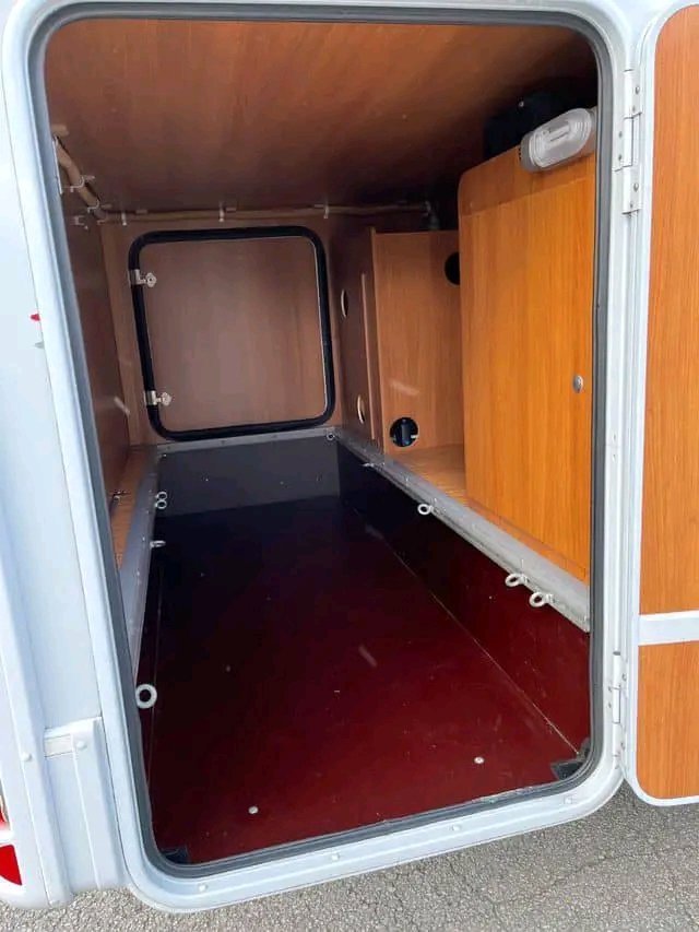Voiture spacieuse et bien entretenue avec fenêtre panoramique, grand lit transversal à l’arrière avec garage. Salle de bain avec douche.