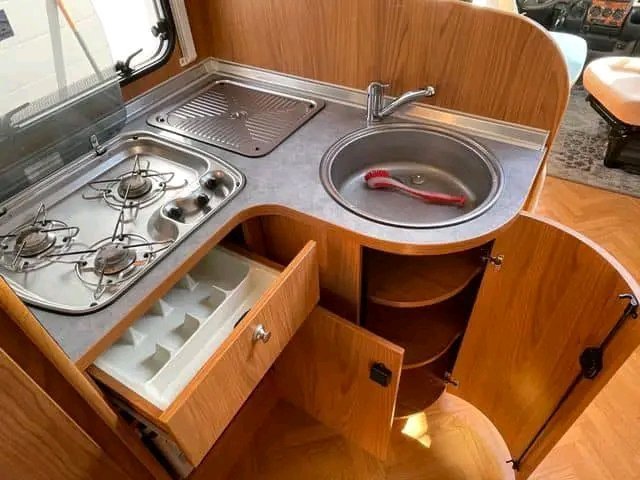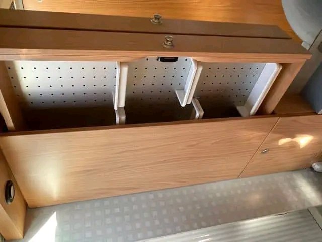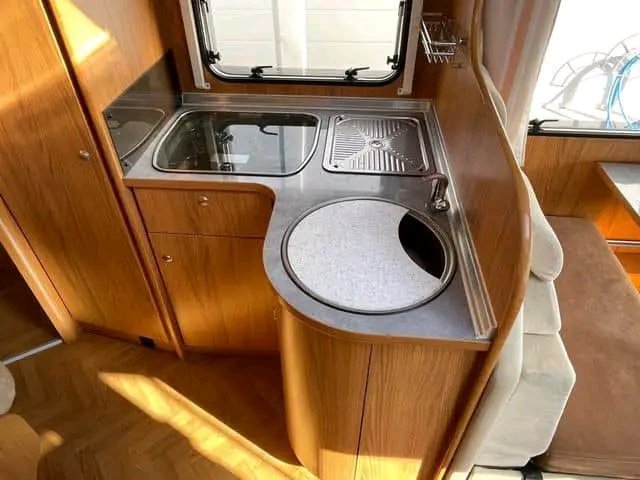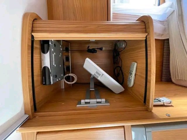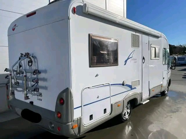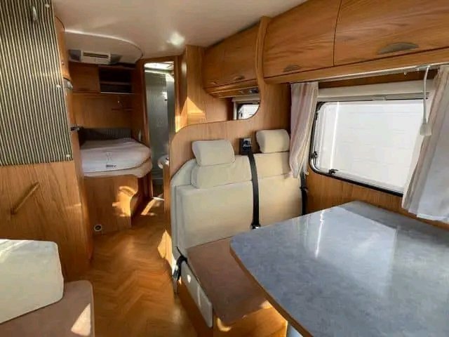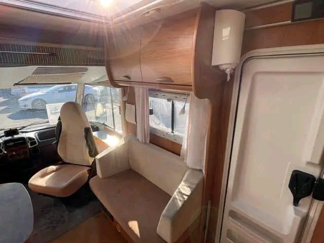 Ici, nous avons reçu un modèle spacieux et populaire de Bürstner. Cette voiture a une télévision avec antenne satellite, alarme à gaz simple, porte-vélos sur la paroi arrière, douche extérieure, grand lit abaissable au-dessus de l’environnement du conducteur, salle de bain spacieuse avec sa propre salle de douche et le modèle de voiture a beaucoup d’espace de placard !