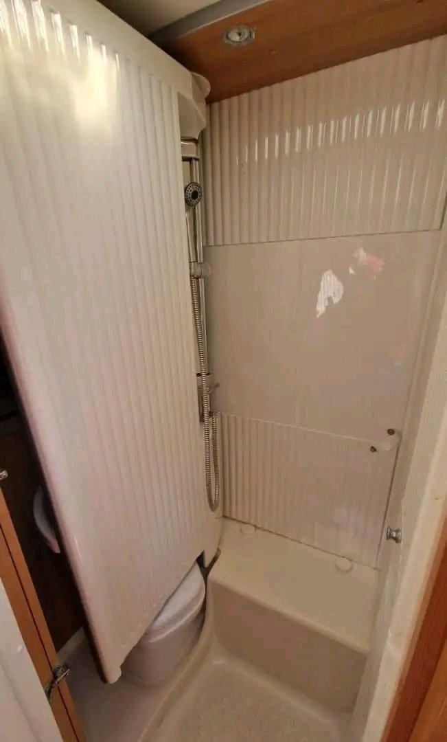 La chambre à coucher est équipée d’un lit double central classique et ingénieux, appelé « queen bed ». La salle d’eau est combinée avec des toilettes et une douche.