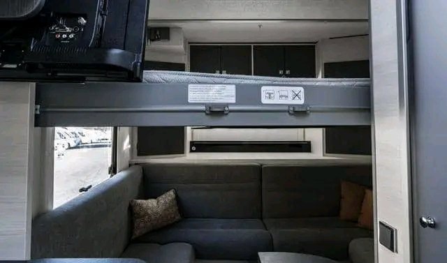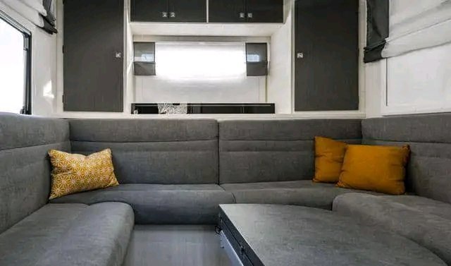 Savourez votre café du matin comme jamais auparavant dans le salon avant spacieux, avec quatre places assises autour de l’élégante table. Discutez de vos projets de voyage, jouez aux cartes ou détendez-vous simplement avec un verre de vin – à vous de choisir. Cet espace devient rapidement le cœur de la voiture, et vous l’apprécierez lors de vos moments de convivialité en cours de route.