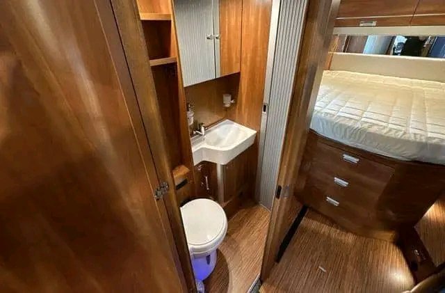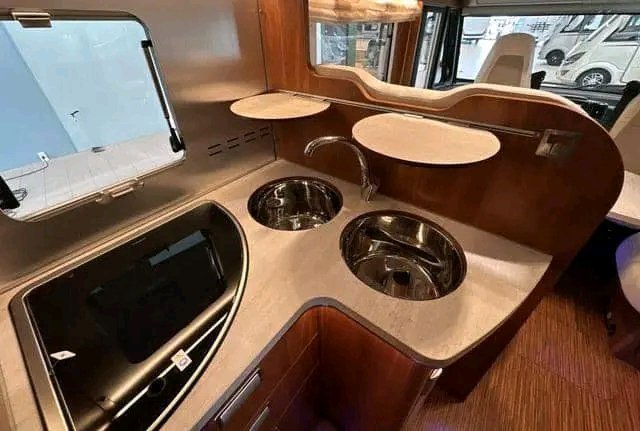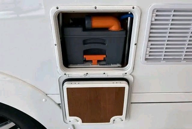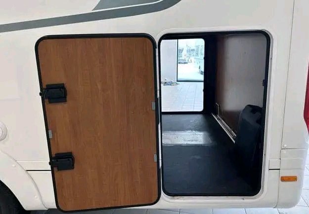 Équipé de deux grandes trappes de chargement à l’arrière pour faciliter l’accès au garage/aux bagages. Trappe séparée pour le réservoir des toilettes et le gaz. Beaucoup d’espace pour 2 bouteilles de gaz