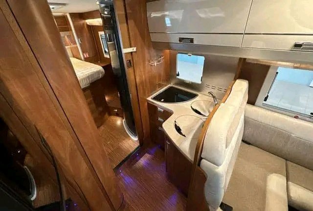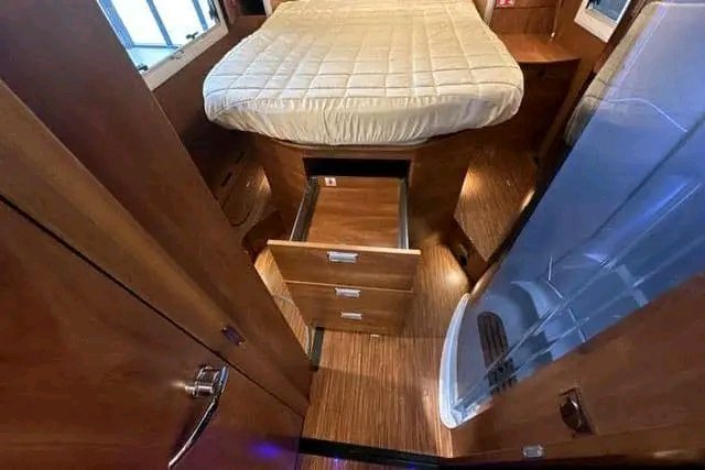 Le plancher du camping-car est également équipé d’un accès à de petits compartiments pour ranger divers équipements.
