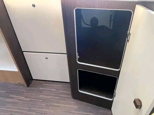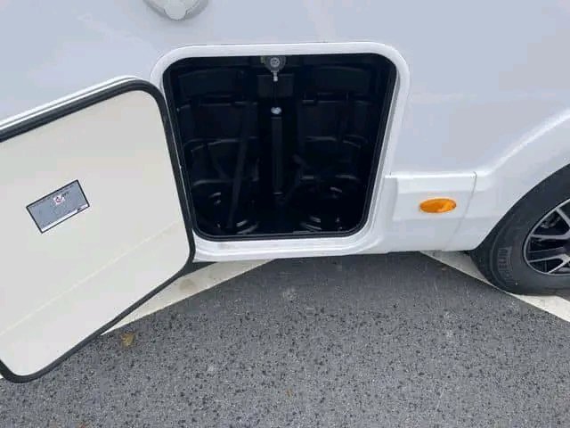 Énorme espace de chargement avec de grandes trappes de chargement des deux côtés de la voiture. Buse de chauffage séparée de Truma en cas de besoin de chaleur dans l’espace de chargement.