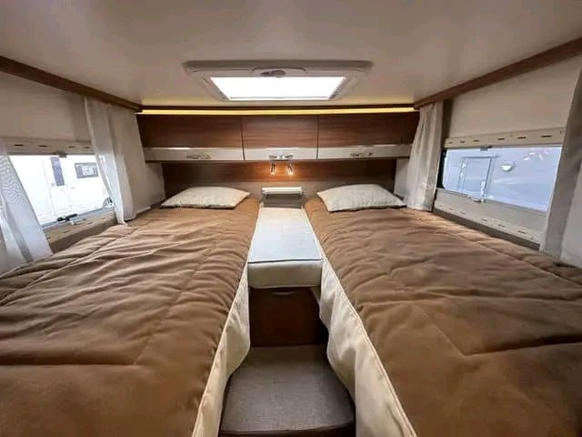 Ce camping-car dispose d’un lit divisé à l’arrière avec deux grands lits simples qui peuvent être combinés en un grand lit. Sous les deux lits, il y a de l’espace pour suspendre des vêtements et d’autres objets que vous souhaitez ranger. Grâce à cette solution de lit, vous bénéficiez également d’un grand espace de chargement à l’arrière, avec de grandes portes de chaque côté.