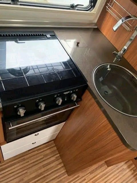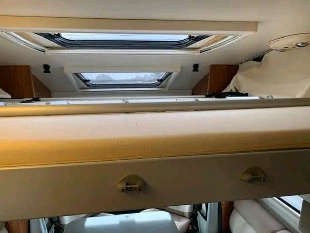 Équipé de bla : Moteur Fiat de 130-HP, climatisation, régulateur de vitesse, radio Pioneer Dab NEUVE avec caméra de recul intégrée, rideaux plissés dans la cabine, antenne Tv+Tv, porte moustiquaire, grand réfrigérateur avec congélateur, cuisinière avec four, chauffage par le sol, chauffage Truma EH-6000 gaz/électrique, auvent, porte-vélos, échelle et barres de toit, pneus d’été Nokia neufs et révision récente avec remplacement de la courroie de transmission, etc.