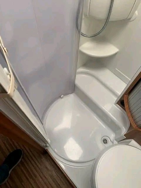 Lit transversal à l’arrière et lit abaissable au-dessus du salon (qui ne couvre pas la porte d’entrée), grand salon, salle de toilette avec douche, fauteuils avant pivotants, grand garage avec 2 portes, etc.