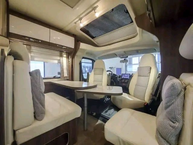 Une Burstner T 685 Fifty-Fifty absolument magnifique. Voiture bien équipée et très bien traitée. Solution de lit à la française, mais avec un accès facile. Douche et placard à côté du lit et toilettes séparées devant le lit. Cuisine bien équipée avec congélateur, réfrigérateur et micro-ondes séparés. Antenne parabolique et télévision. Radio DAB, système de navigation et caméra de recul en place. Pneus d’hiver et d’été sans crampons inclus. Système de chauffage combiné Truma à l’électricité et au gaz ainsi que chauffage électrique par le sol et sièges avant chauffants.