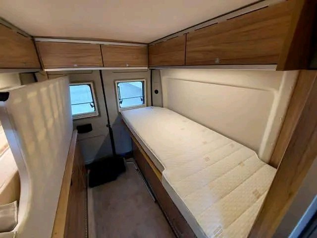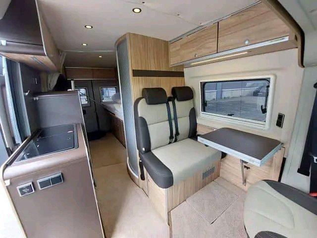 Camping-car urbain Sprek avec tente de toit, où l’on peut facilement loger quatre personnes sans être à l’étroit. La hauteur sous plafond est bonne aux deux étages. La voiture est équipée d’une boîte de vitesses manuelle, ce qui est un avantage indéniable si vous voyagez sur un terrain légèrement accidenté avec ces modèles. En résumé, une voiture bien entretenue et prête à affronter les montagnes.