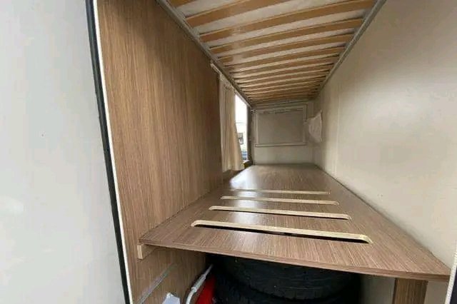 Solution de couchettes à l’arrière de la voiture. Très pratique pour une famille qui voyage.