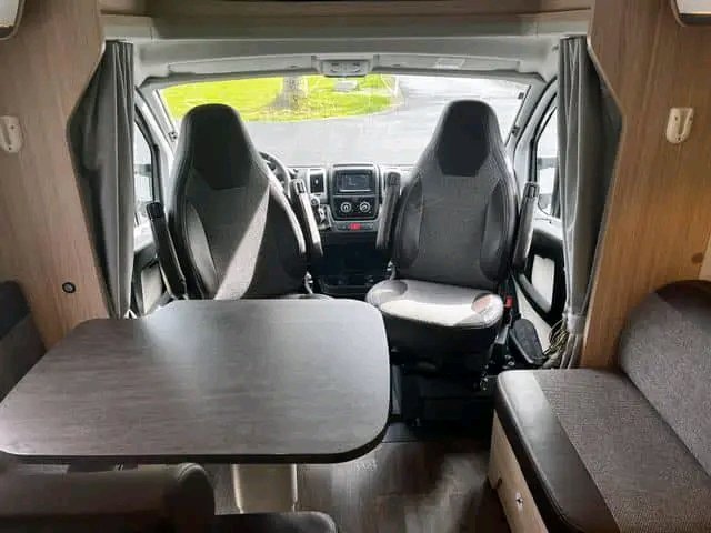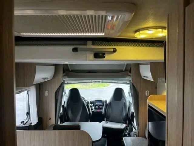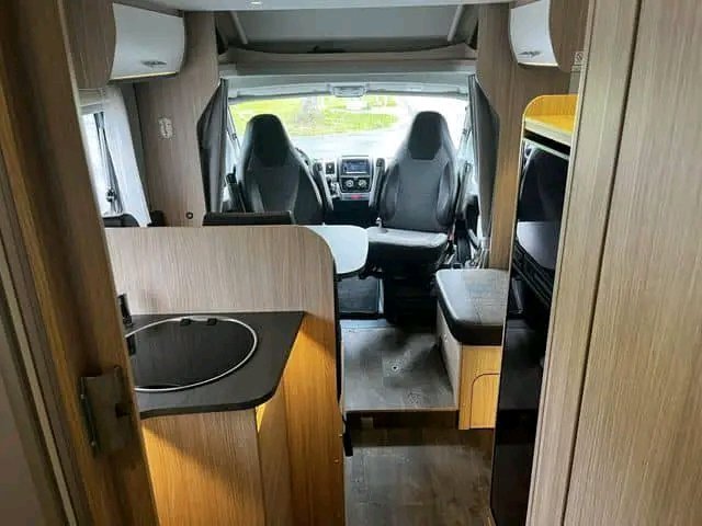 Deux fauteuils très confortables avec des accoudoirs des deux côtés pour que vous puissiez vous asseoir confortablement pendant le voyage. Lecteur 2din intégré auquel vous pouvez connecter votre téléphone pour écouter la musique que vous voulez. Une caméra de recul est également installée à l’intérieur du lecteur 2din, et ce camping-car dispose également d’un régulateur de vitesse. Le véhicule est un liner 2018, immatriculé et mis en circulation pour la première fois en 2019.