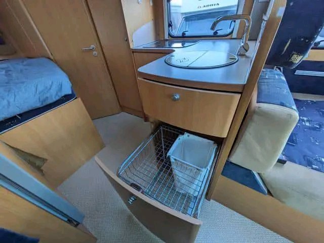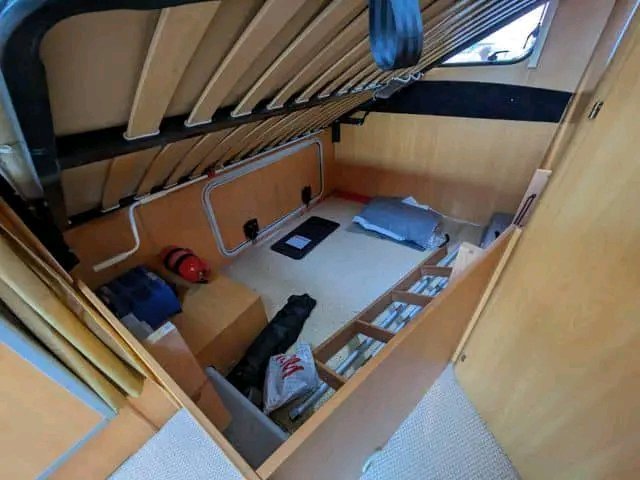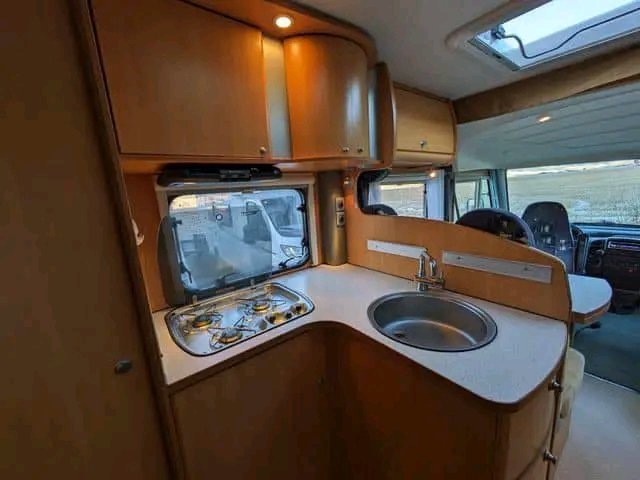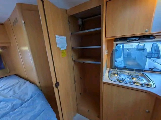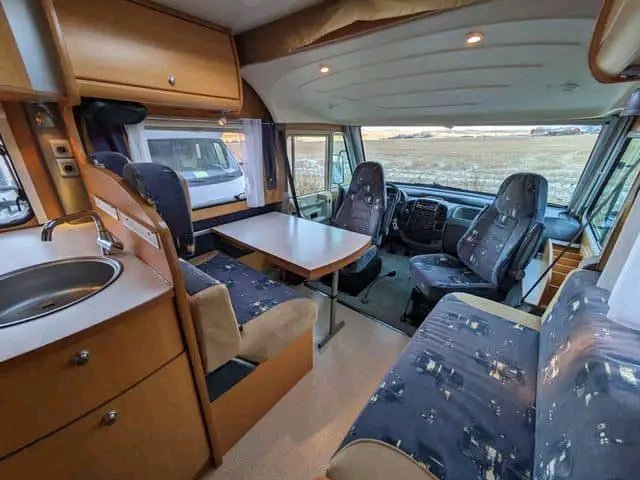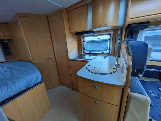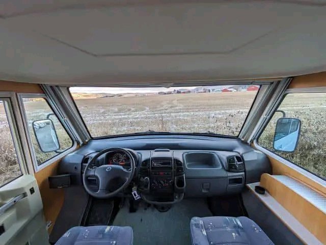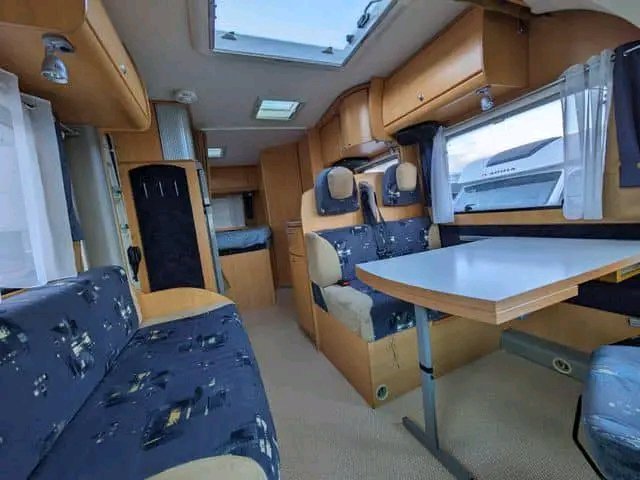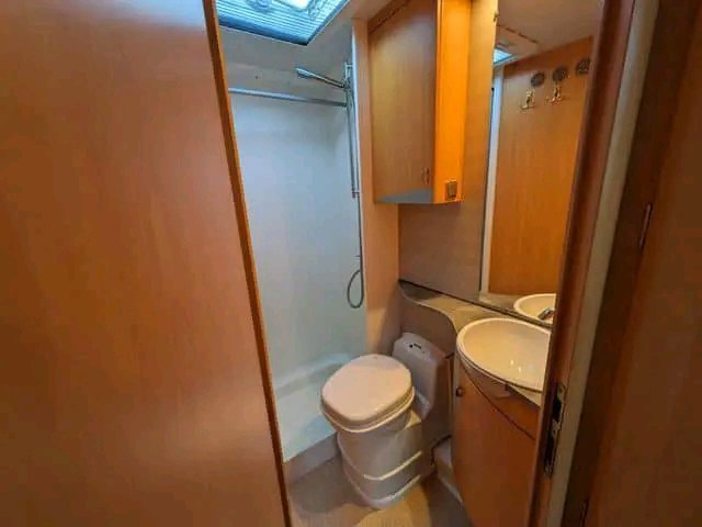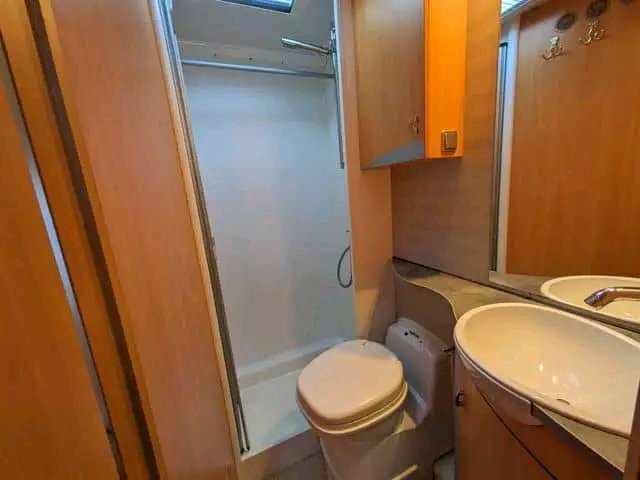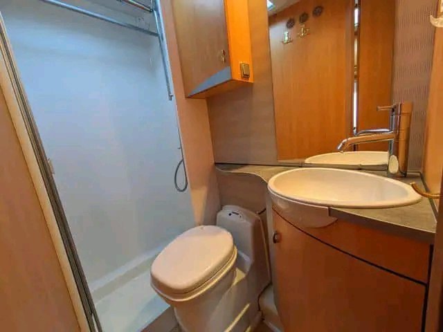 Véhicule correct avec un aménagement très spacieux. Grande salle de bain avec cabine de douche et coin salon avec grande banquette. Il semble ouvert et agréable.