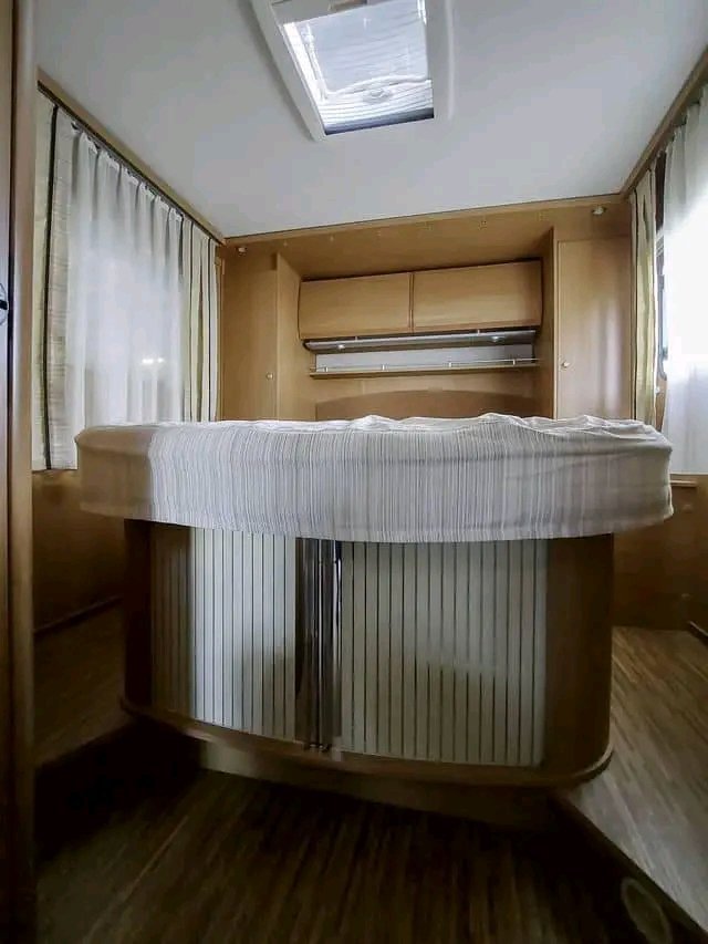 Prêt à être livré !. Avec un lit double en position centrale à l’arrière de la voiture. Accès facile pour une bonne nuit de sommeil. Il y a également un lit abaissé à l’avant. La voiture est équipée d’une boîte de vitesses manuelle et du puissant moteur de trois litres de 158 ch bien connu. Le véhicule est équipé d’un porte-vélos, d’une caméra de recul, d’un panneau solaire, d’un auvent, d’un régulateur de vitesse et d’une salle de douche/toilettes séparée. Le chauffage Truma Combi E fonctionne au gaz et à l’électricité, et la cuisine est équipée d’un réfrigérateur et d’un congélateur séparé.