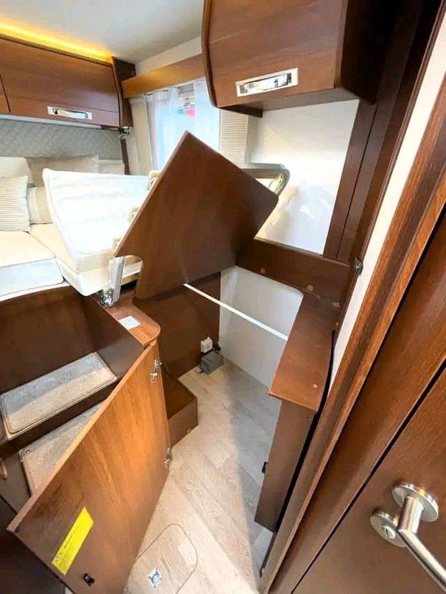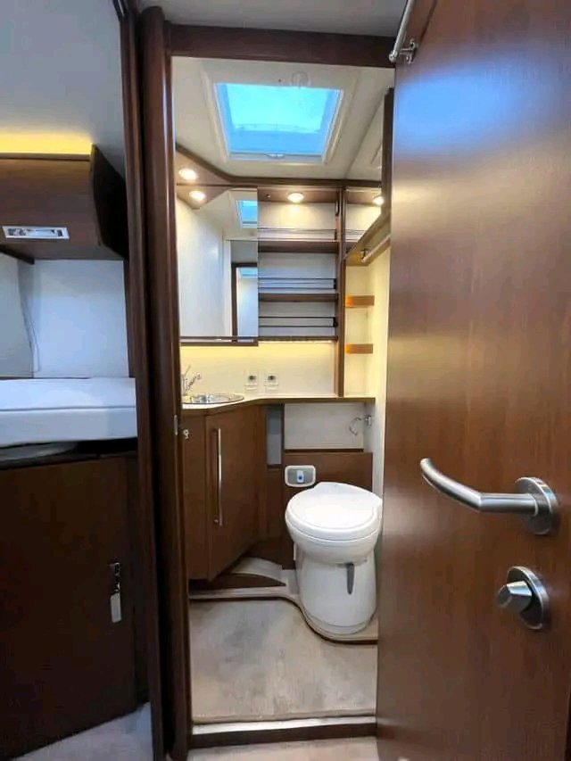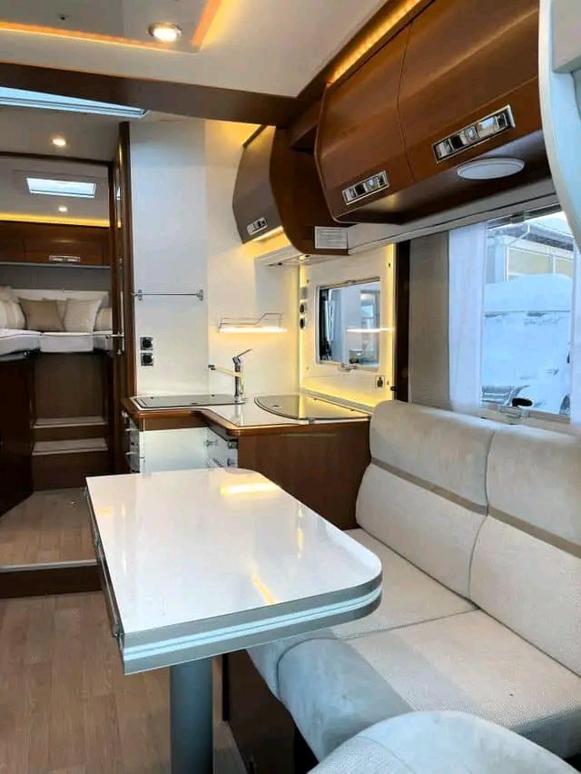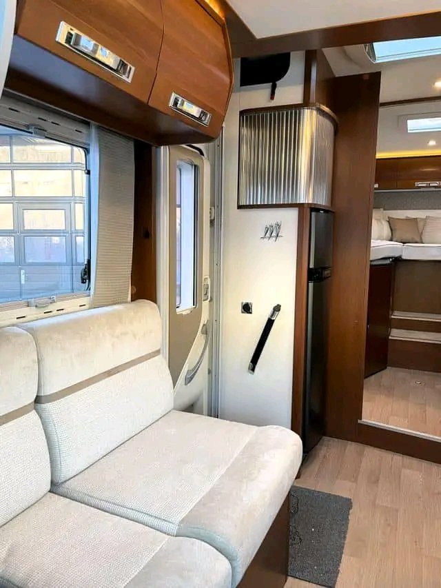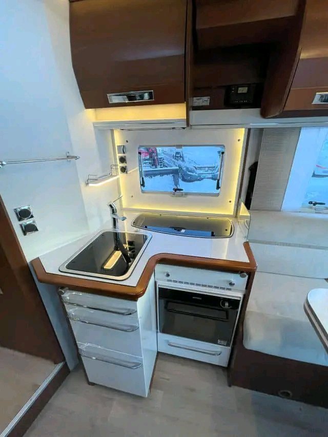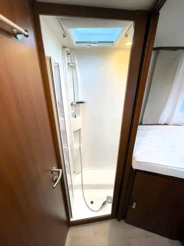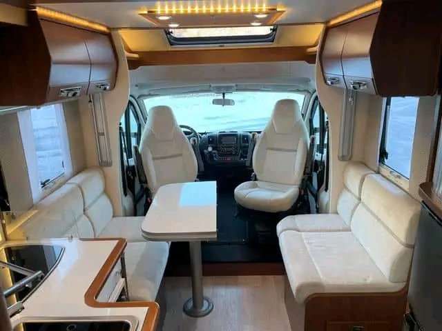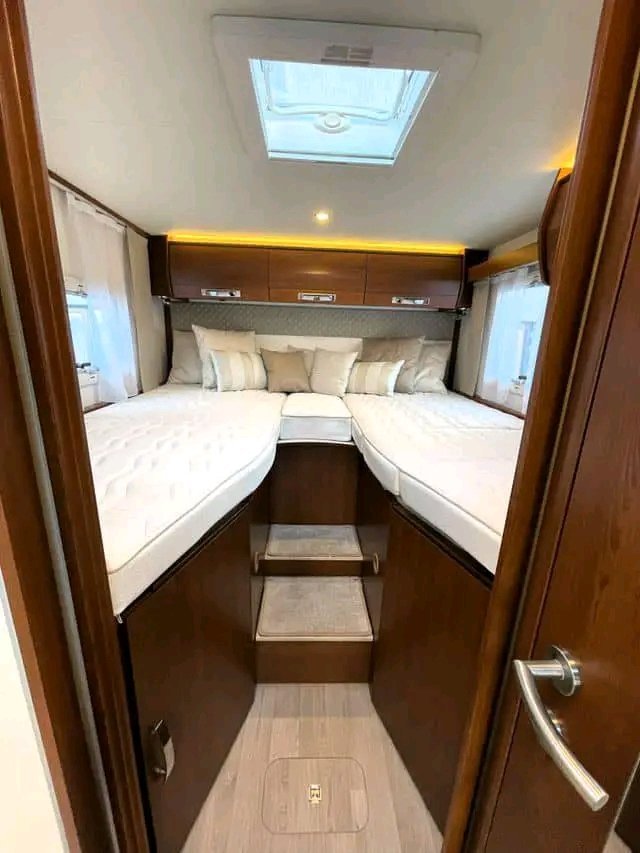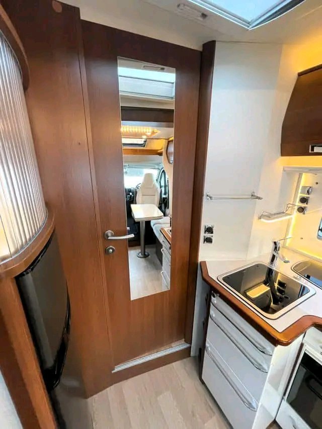Beau camping-car d’occasion d’un poids total de 3,5 tonnes pouvant être conduit avec un permis « normal ». Le véhicule dispose de 2 lits simples à l’arrière et de la possibilité de faire un lit dans le salon. Douche et toilettes séparées. Cuisine avec four, plaque de cuisson à 3 feux et grand réfrigérateur AES de 149 litres. Le salon est équipé de banquettes longitudinales (face à face) qui rendent la voiture ouverte et spacieuse et d’un toit ouvrant panoramique qui laisse passer beaucoup de lumière du jour. La voiture dispose de nombreux espaces de rangement dans le coffre, sous les lits.
