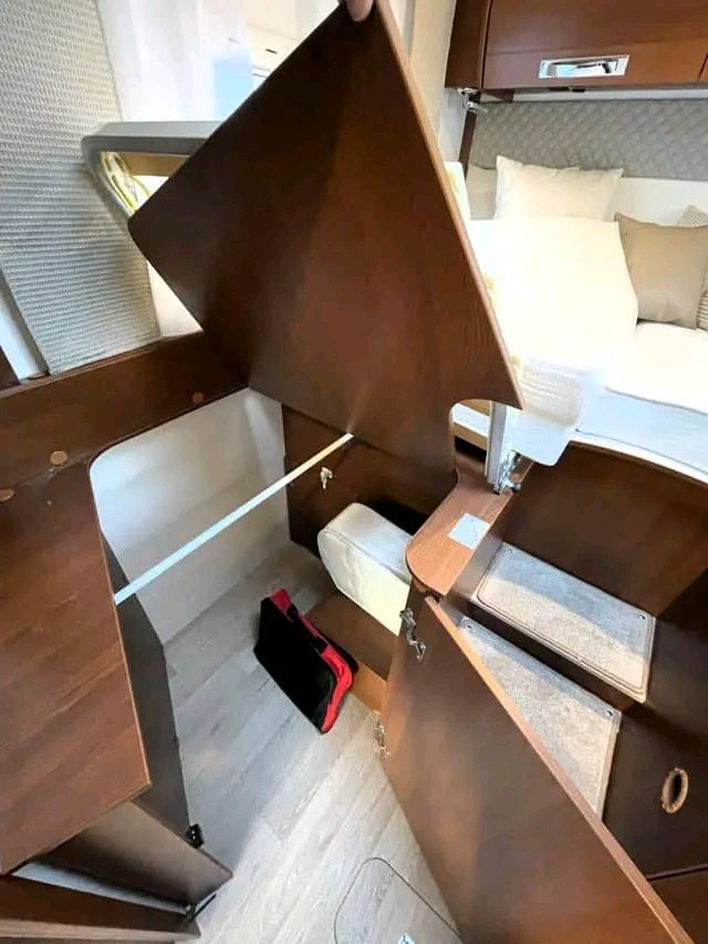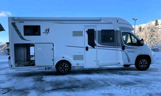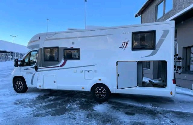 Equipement : Auvent, panneau solaire, porte-vélos pour 2 vélos, caméra de recul, pieds de support, TV, alarme à gaz NX-10, four, Truma combi 6EH, chauffage électrique par le sol, réservoir d’eau usée chauffé, inverseur automatique de gaz Duo-Control avec anti-collision qui permet de rouler avec le chauffage au gaz, rideaux occultants dans la cabine, ventilateur de cuisine, moquettes moulées….