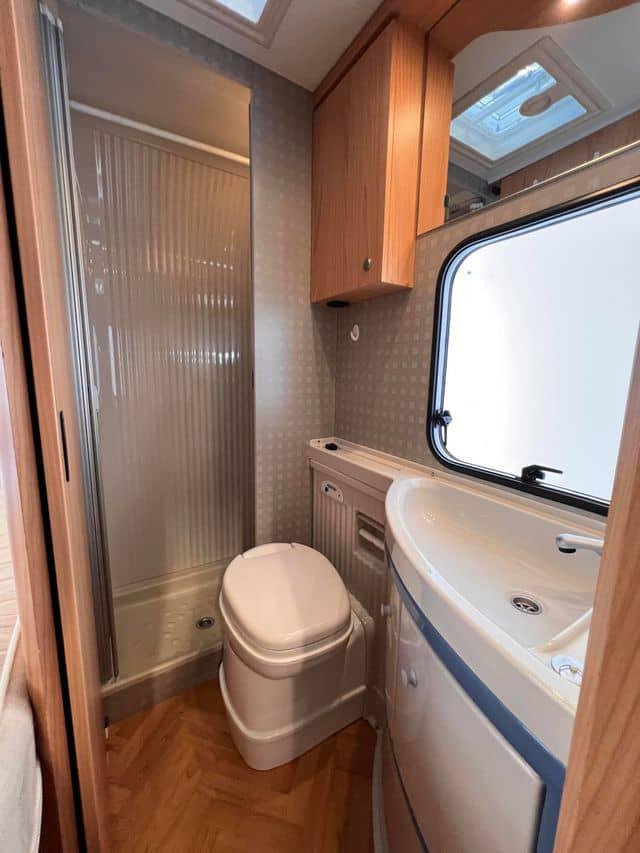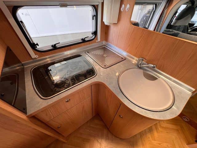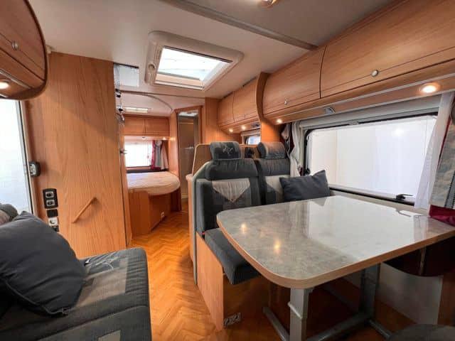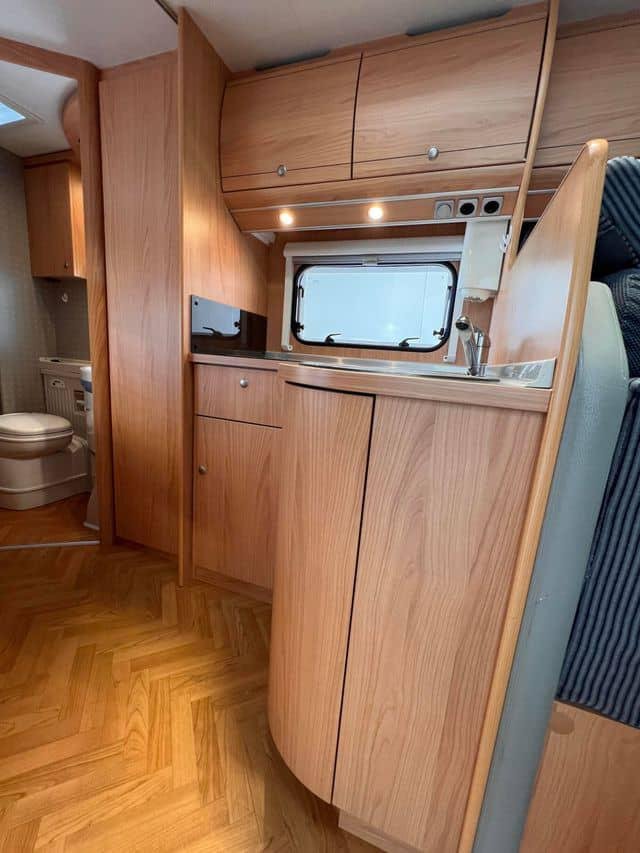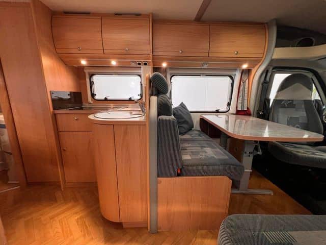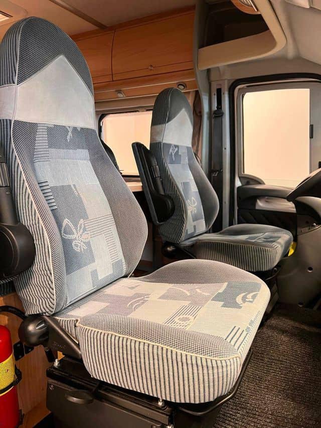 Joliment équipé avec par exemple châssis / espace de vie entièrement peint, chauffage à air Thruma Combi avec ballon électrique, lit double latéral, fauteuils confort réversibles à l’avant, four, échelles Owens à l’avant, porte-vélos, auvent, caméra de recul, rideaux occultants pour la cabine, contrôle de traction ASR, radio / CD, volant multifonctions, réservoir d’eaux usées chauffé, etc.