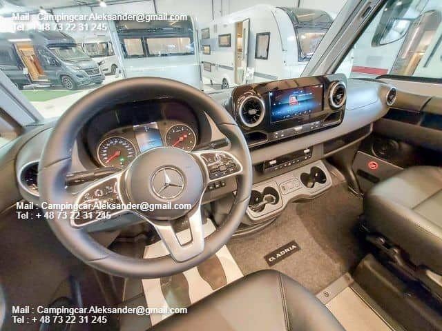Élégant Adria Super Sonic construit sur un châssis Mercedes. Voiture de qualité pour les exigeants. Le 890 DC est équipé d’un lit double central à l’arrière et d’un lit pavillon à l’avant. La voiture est peinte en argent métallisé et possède un auvent et des pieds de support manuels entièrement assemblés. Beaux meubles recouverts de cuir et sièges conducteur confortables. L’ancien chauffage central à eau assure une température confortable toute l’année. Cuisine bien équipée avec four. La voiture est équipée d’un moteur de 170 ch et d’une boîte de vitesses automatique à 9 rapports. Equipé de la plupart des équipements d’usine et d’un système multimédia avec navigation de Mercedes