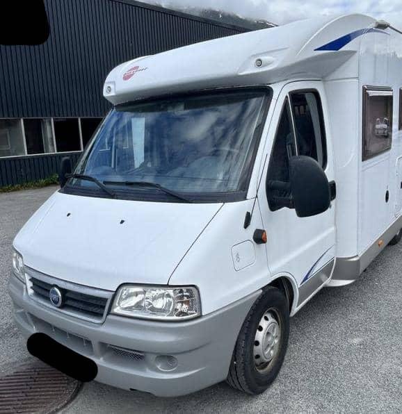 FIAT 2.3 110 CH Bürstner Solano T 615 , année : 2006 , kilométrage : 72000 Km , permis B , panneaux solaires, test d’étanchéité okok , 4 places , 4 couchages, permis B , diesel, manuelle ,