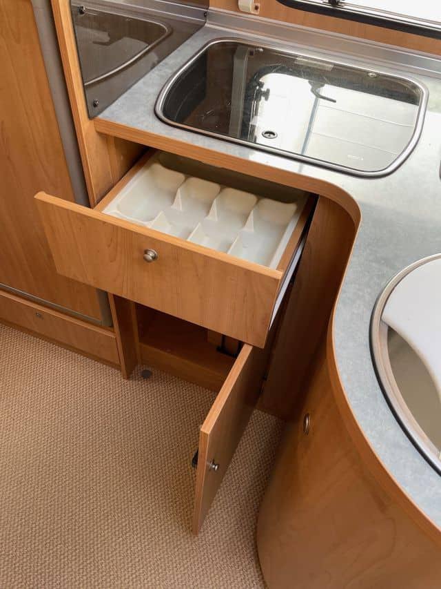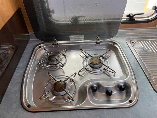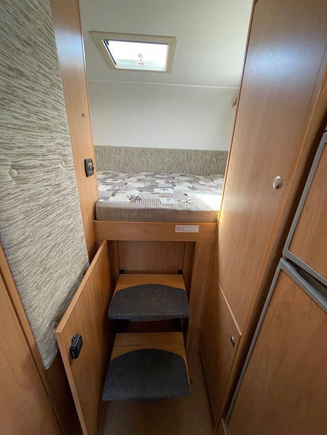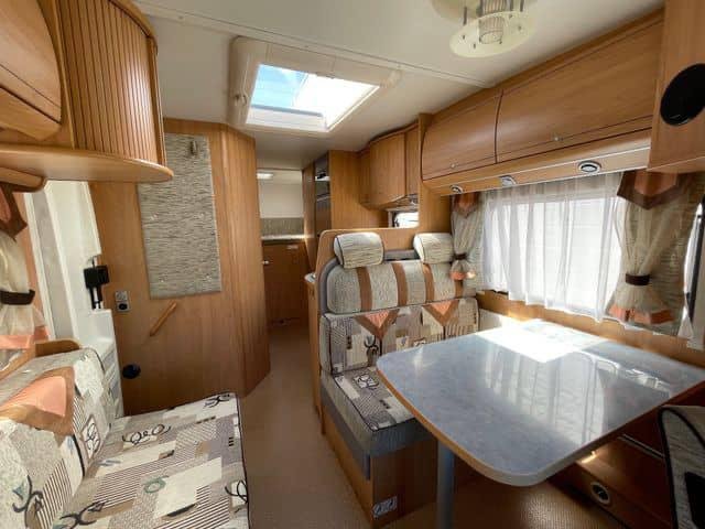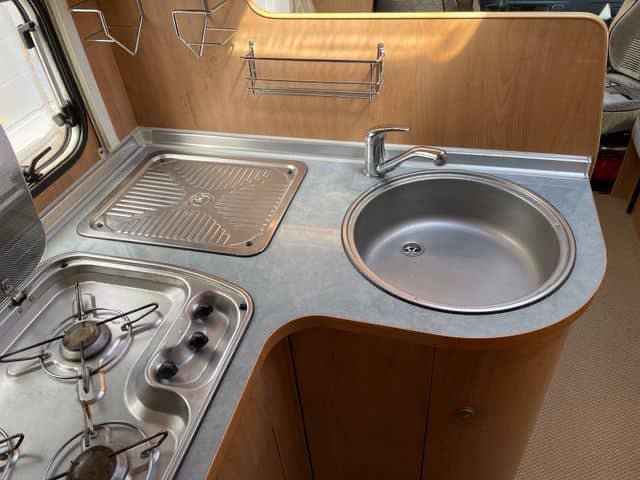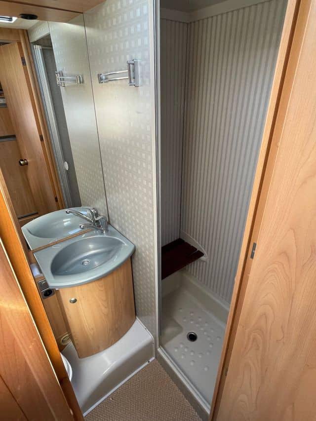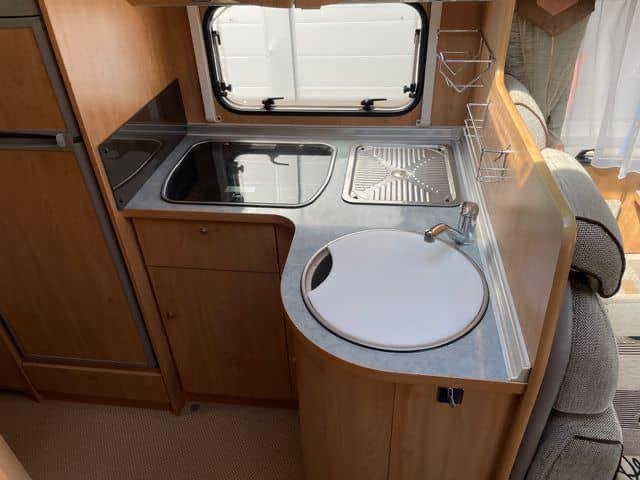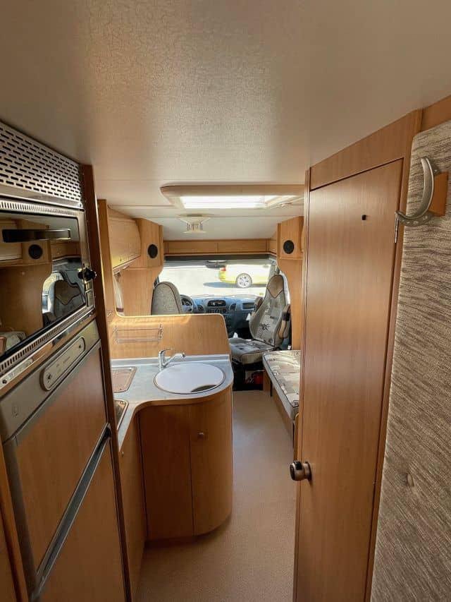 Voici une solide voiture habitable semi-intégrée Bürstner avec un spacieux coin salon et un grand lit double à l’arrière.Ce véhicule dispose d’une grande salle de bain combinée avec sa propre salle d’eau. Les autres équipements comprennent un four à gaz, une télévision, une alarme à gaz simple, une barre lumineuse dans la grille, une barre de remorquage (crochet non monté) et deux jeux de roues.