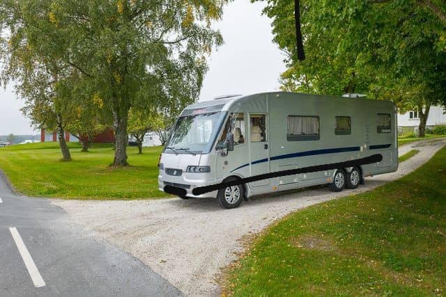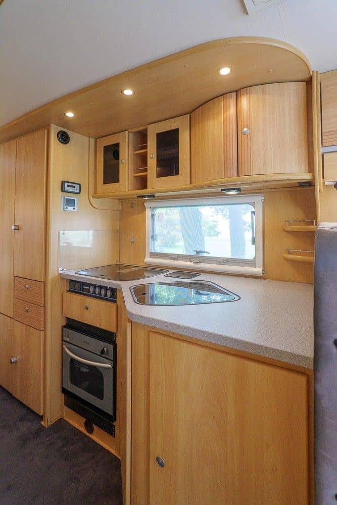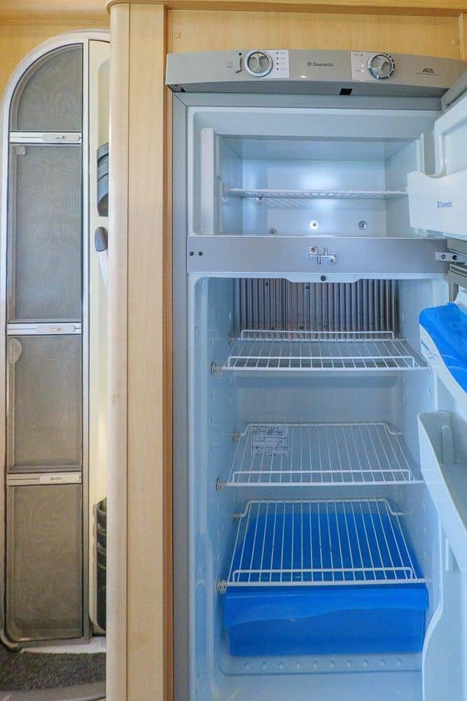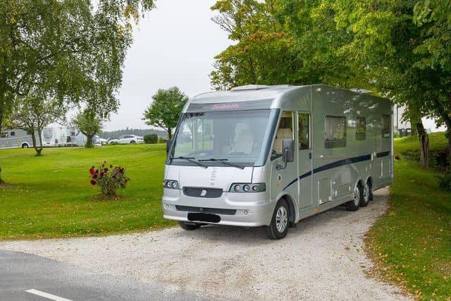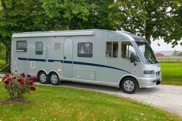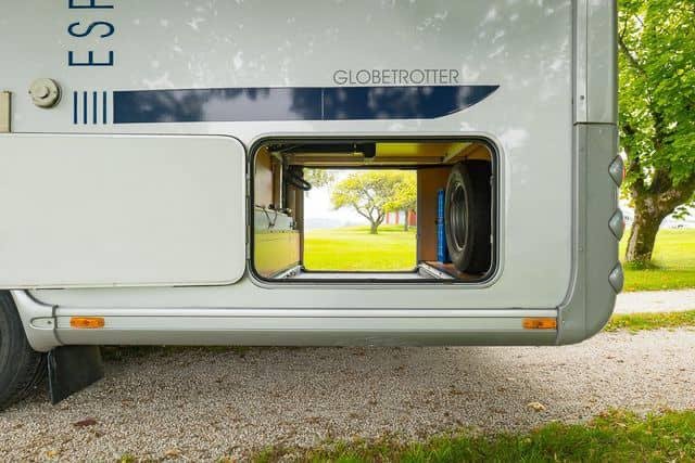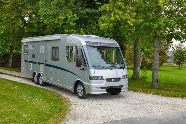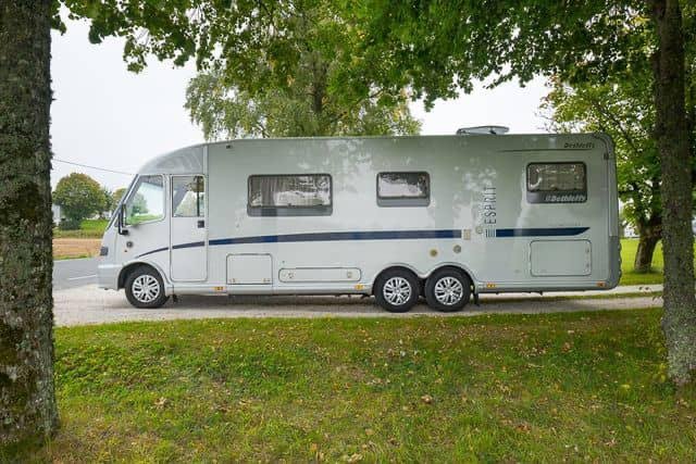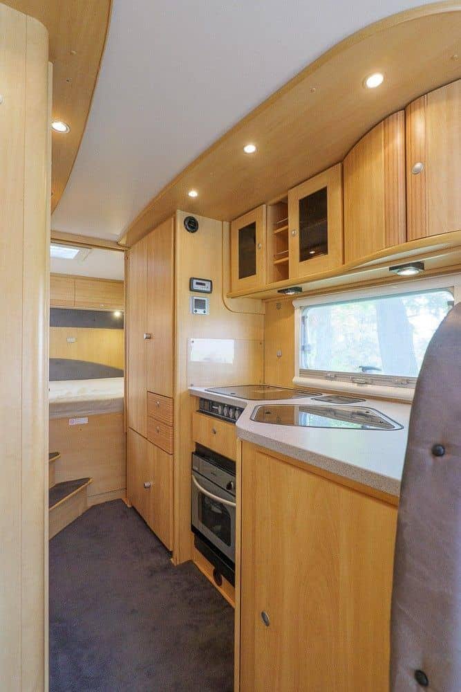 Grande voiture familiale de Dethleffs, avec beaucoup d’espace de rangement et un grand garage.