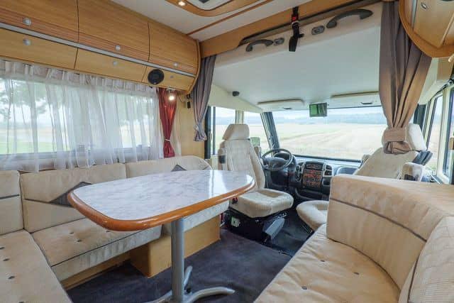 Prix : 12500€ FIAT 2.8 147 CH , année : 2006 , manuelle , diesel , 4 places , 4 couchages , test d’étanchéité ok , panneaux solaires, porte vélos , permis B