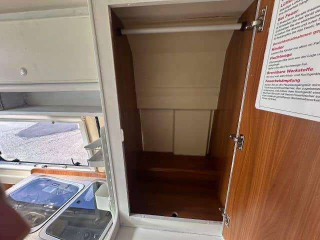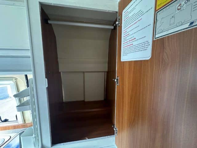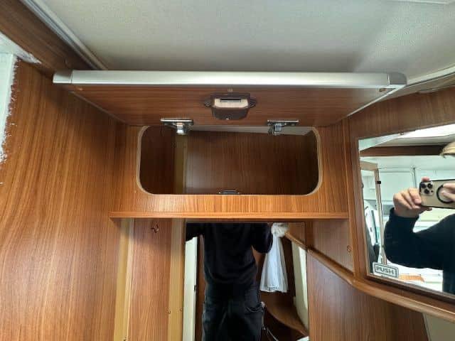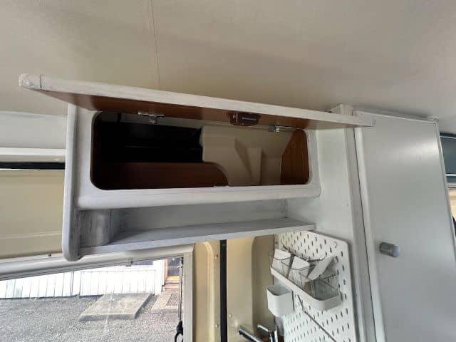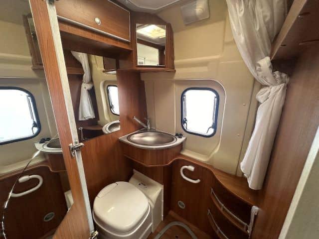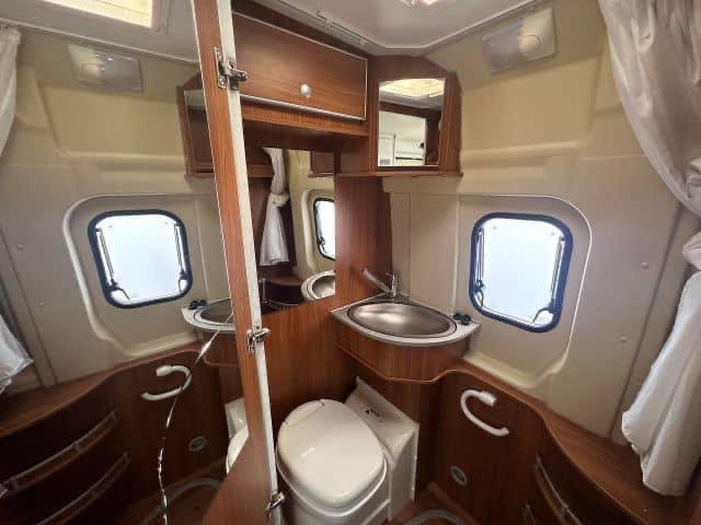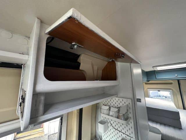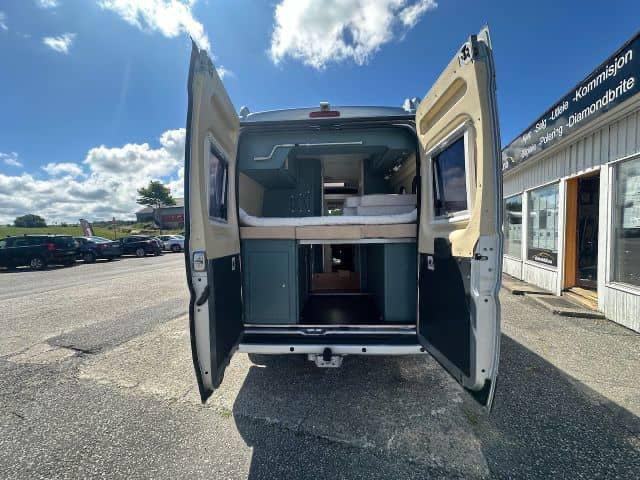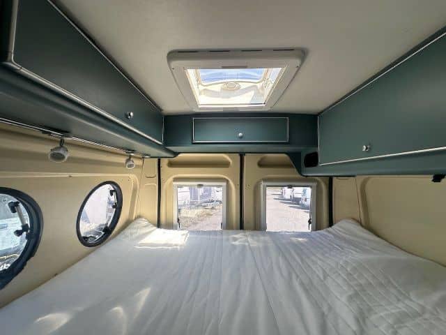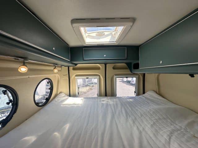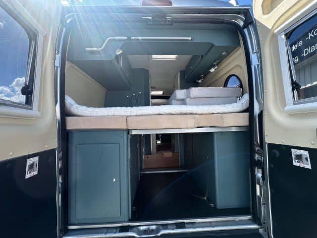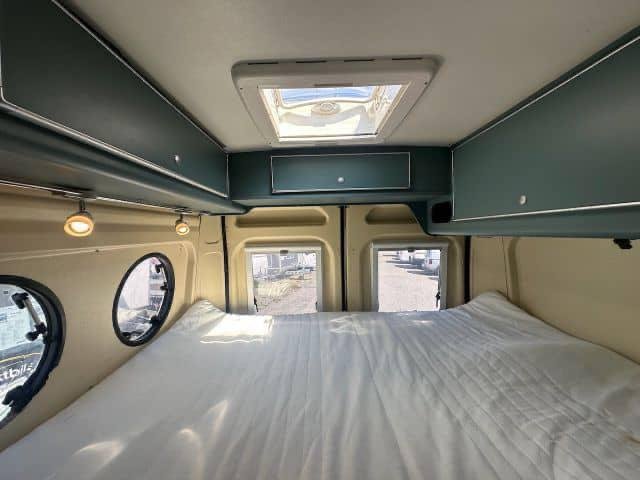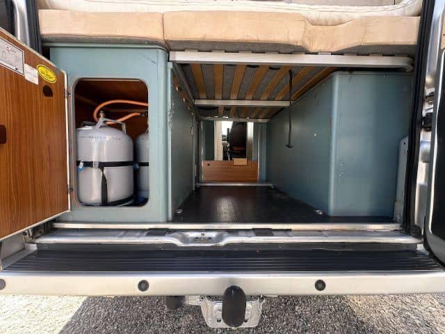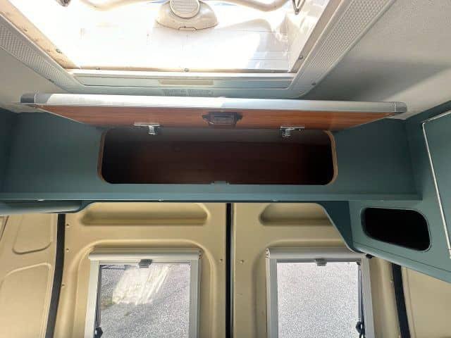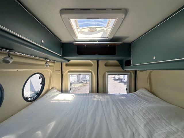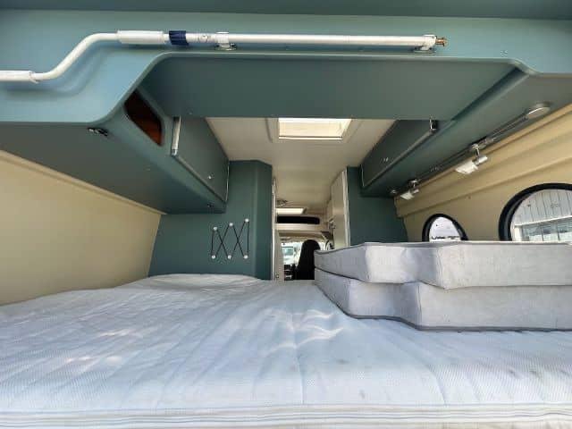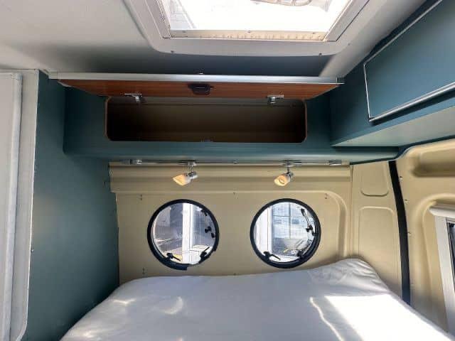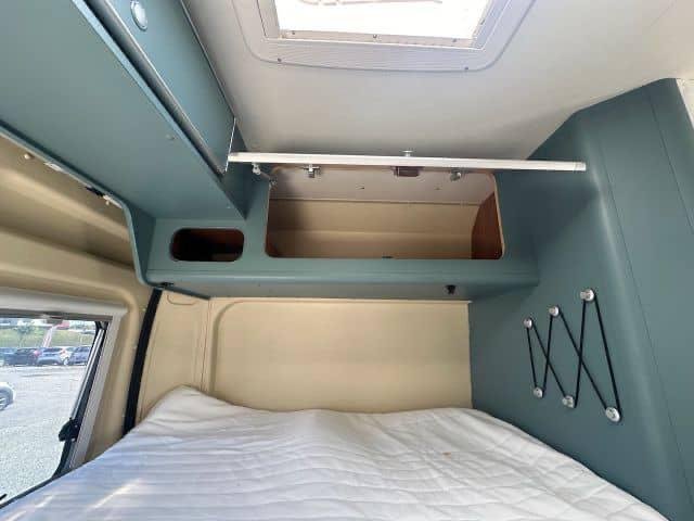 Dans ce modèle, il y a un lit transversal à l’arrière, un espace pour les bagages sous le lit arrière.