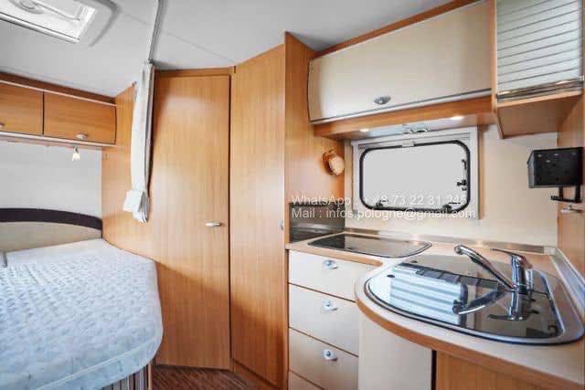 • ✅ Vie à bord : moustiquaire, store extérieur (markise), radio DAB+, Bluetooth, TV + antenne, CD-player