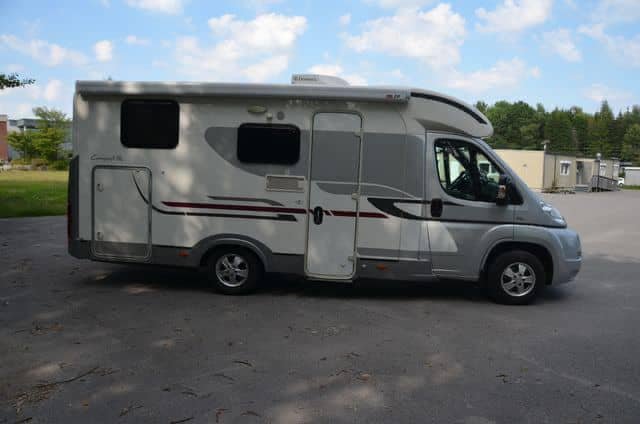 FIAT 2.3 130 CH Adria Compact , année : 2010 , kilométrage : 83970 km , diesel , manuelle , 4 places , 4 couchages , permis B , panneaux solaires , test d’étanchéité ok, porte vélo