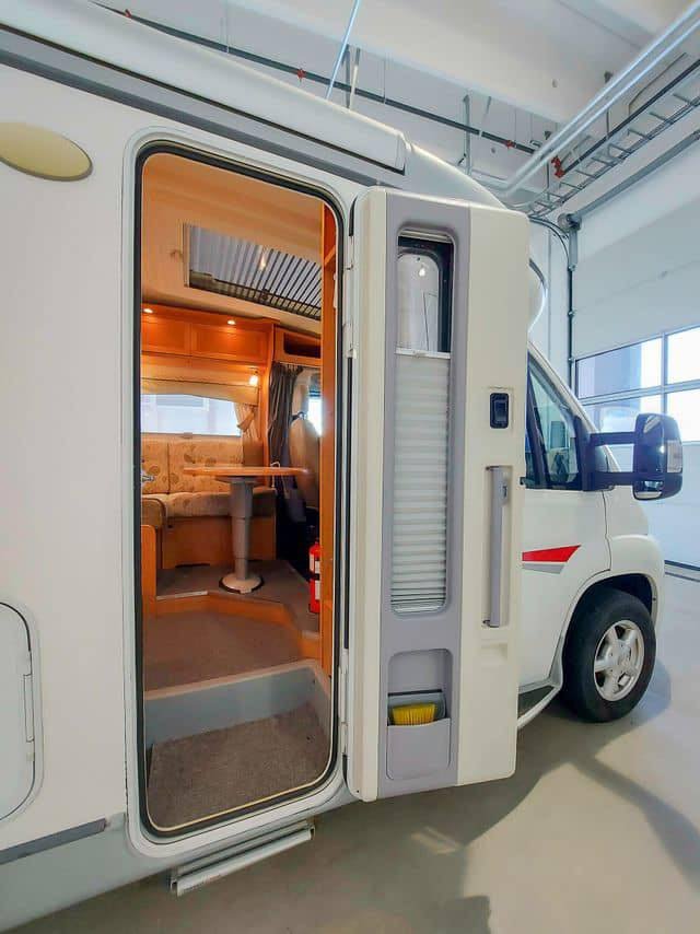 Un classique intemporel bien fonctionnel de Kabe. Travel Master WT avec deux lits simples séparés et une salle de bain le long de la paroi arrière, avec sa propre cabine de douche. Le chauffage central à eau Alde vous garde au chaud tout au long de l’année. La voiture est équipée d’un toit ouvrant Sky Wiew et d’un bon éclairage intérieur. Elle montre des signes d’utilisation prudente et a un faible kilométrage compte tenu de son âge. L’usure de l’intérieur est minime. Cuisine avec hotte aspirante, grand réfrigérateur et congélateur séparé. Attelage de remorque avec une capacité de remorquage de 2000 kg. Il y a un porte-vélos sur la paroi arrière.