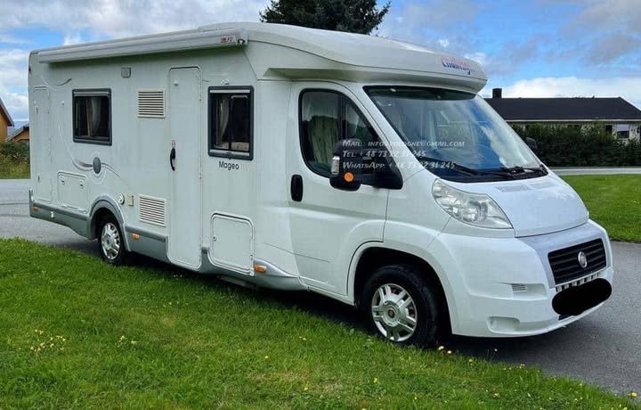 Modèle bien équipé, idéal pour voyager confortablement à deux.