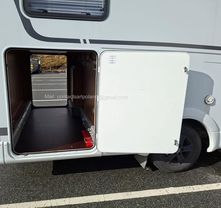 Le véhicule dispose également d’un grand garage sous le lit arrière, accessible par deux grandes trappes latérales, offrant un espace de rangement très pratique pour vélos et équipements.