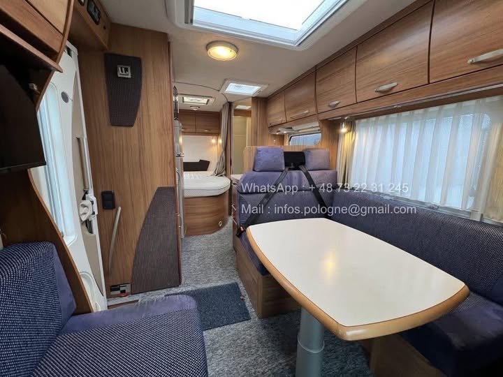 Ce modèle propose une vaste chambre arrière équipée d’un lit français, offrant un espace de couchage confortable et facilement accessible. Les aménagements intelligents garantissent une bonne circulation à bord, même pour plusieurs occupants.
