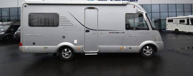 Accueil Camping car Prix : 17000€ FIAT 2.3 131 CH Hymer B 654 CL , année : 2008 , kilométrage : 114600 km , 4 places , 4 couchages , panneaux solaires , permis B ,