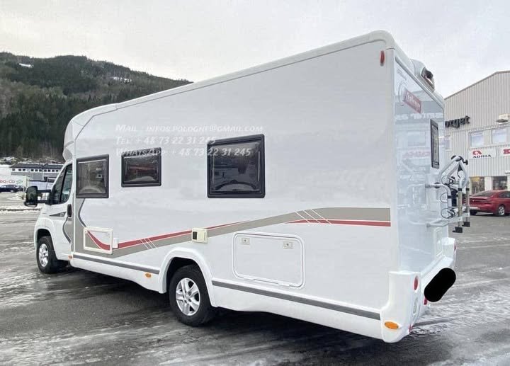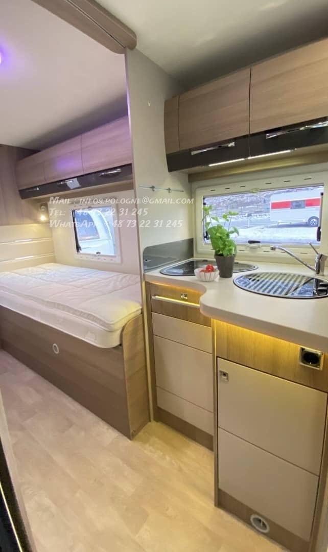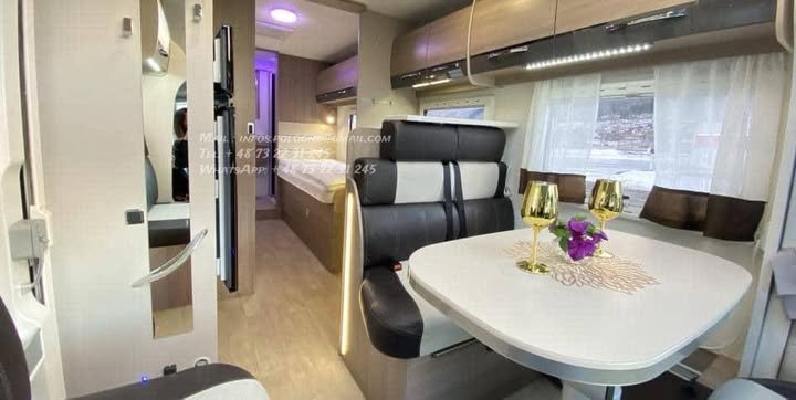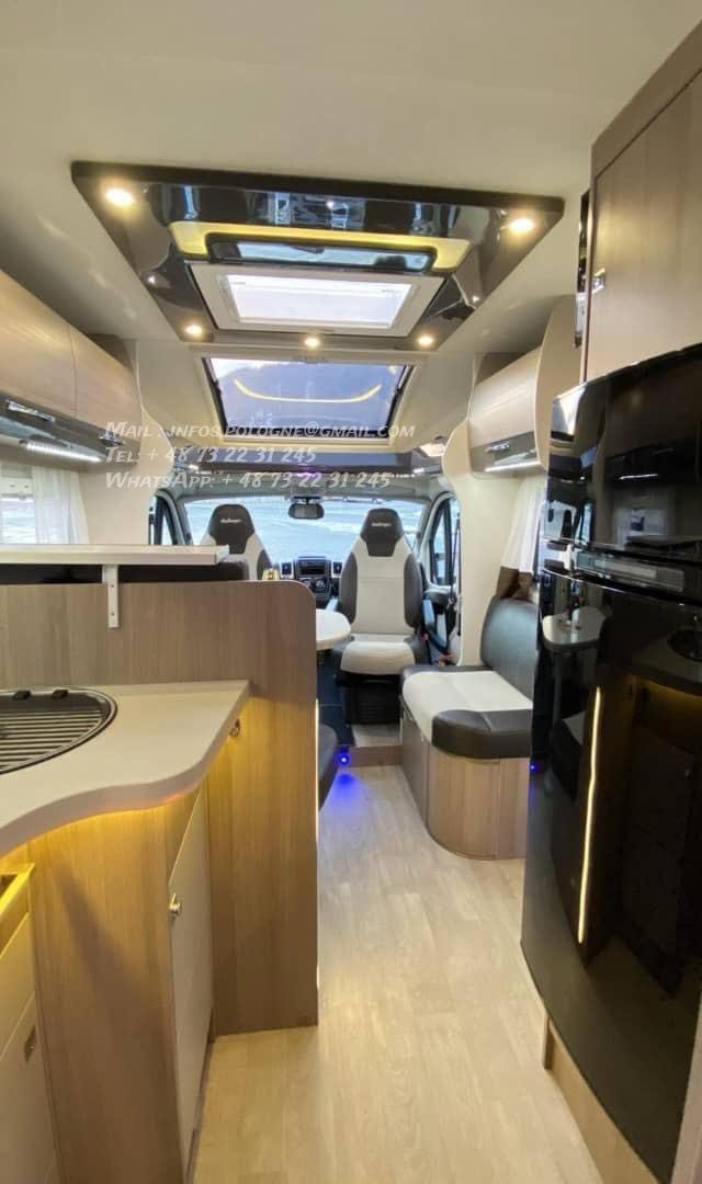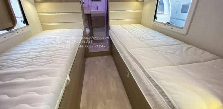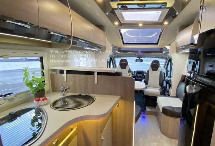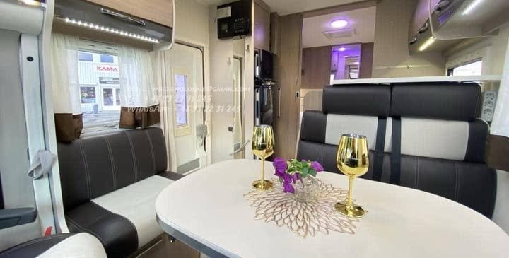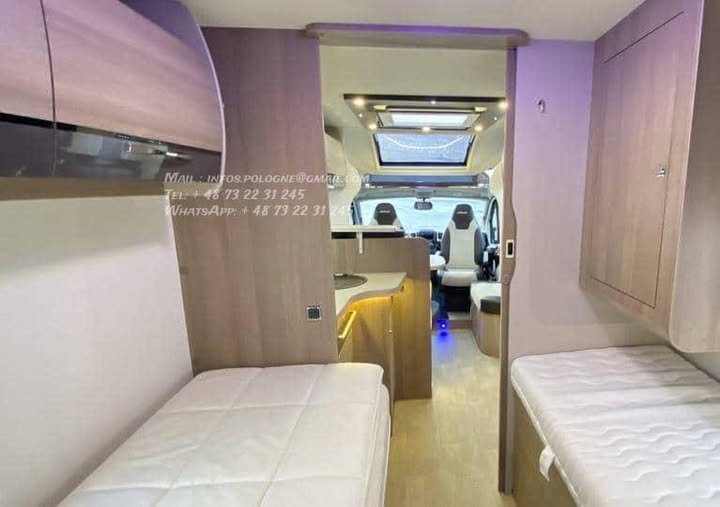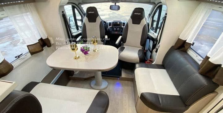 Configuration idéale 4 places carte grise / 4 couchages, longueur généreuse 7,47 m, tout en restant en PTAC 3 500 kg (permis 😎.