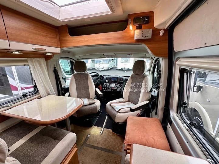 Parfaitement entretenu, il est équipé de nombreux éléments pour le confort et l’autonomie : chauffage central Truma, navigation, télévision, caméra de recul, panneaux solaires et bien plus encore.