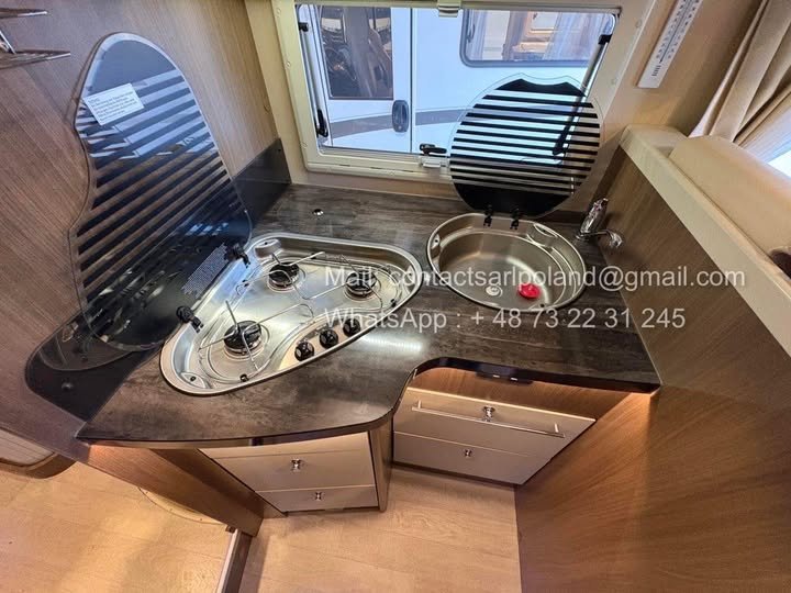 Son plan d’aménagement est particulièrement recherché grâce à la présence de lits simples à l’arrière et d’un lit pavillon électrique, permettant d’accueillir confortablement jusqu’à 4 personnes.
