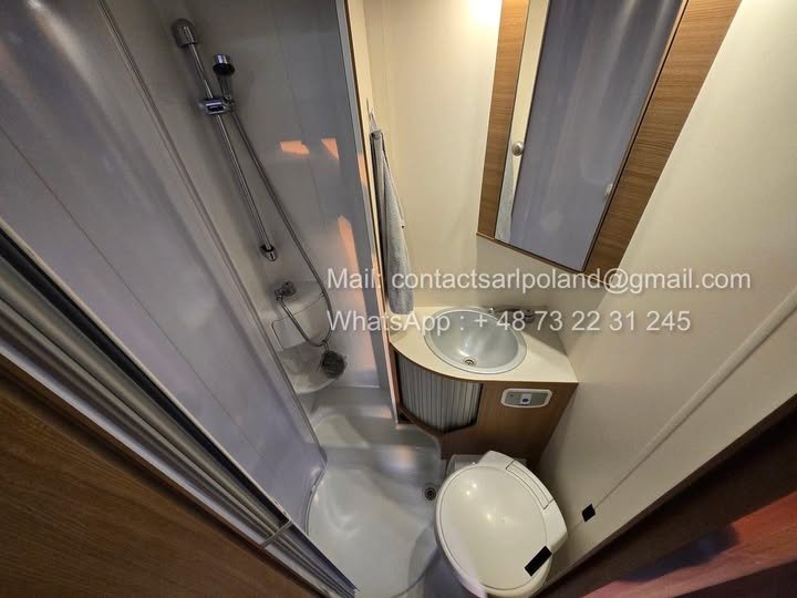 Le camping-car dispose d’une salle d’eau complète comprenant :