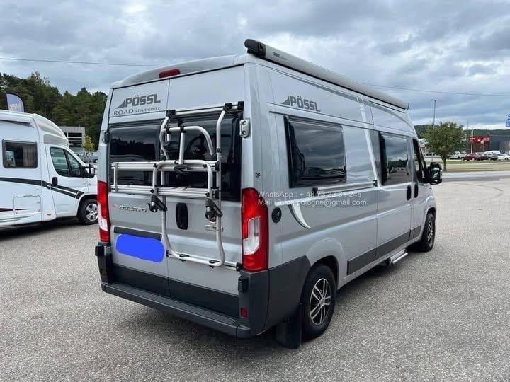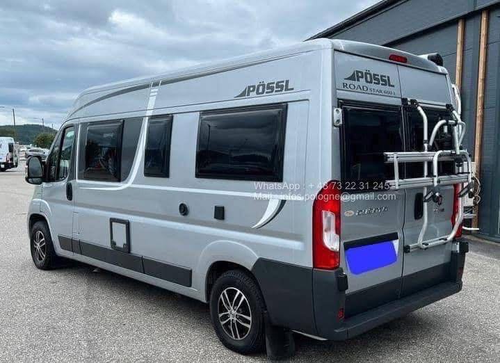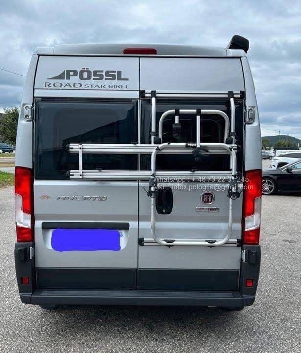 Accueil Accessories Prix : 19500€ ,Fiat Pössl Roadstar 600L – 150 ch – Compact & Équipé – 2017 – 54 637 km | 4 couchages | Markise | Sykkelstativ | Truma varmesystem